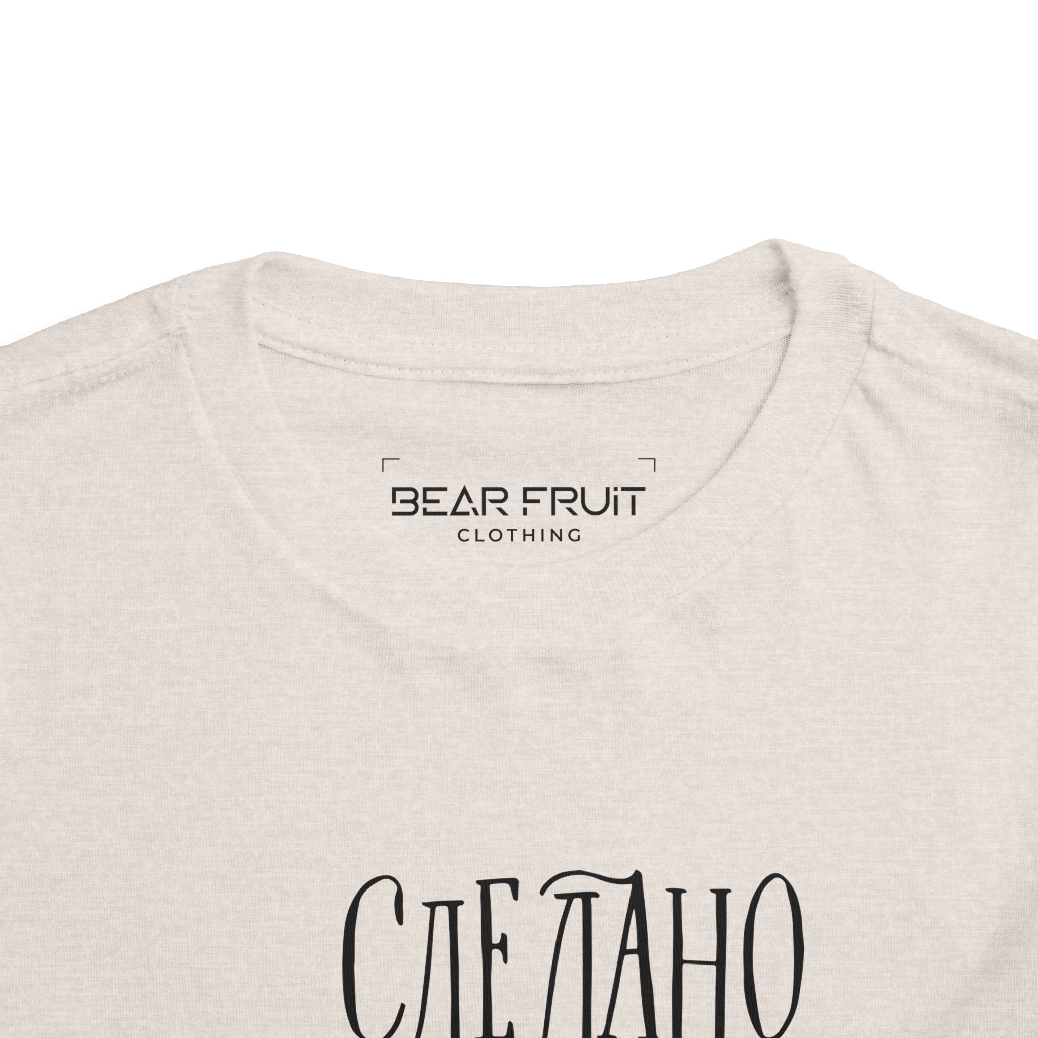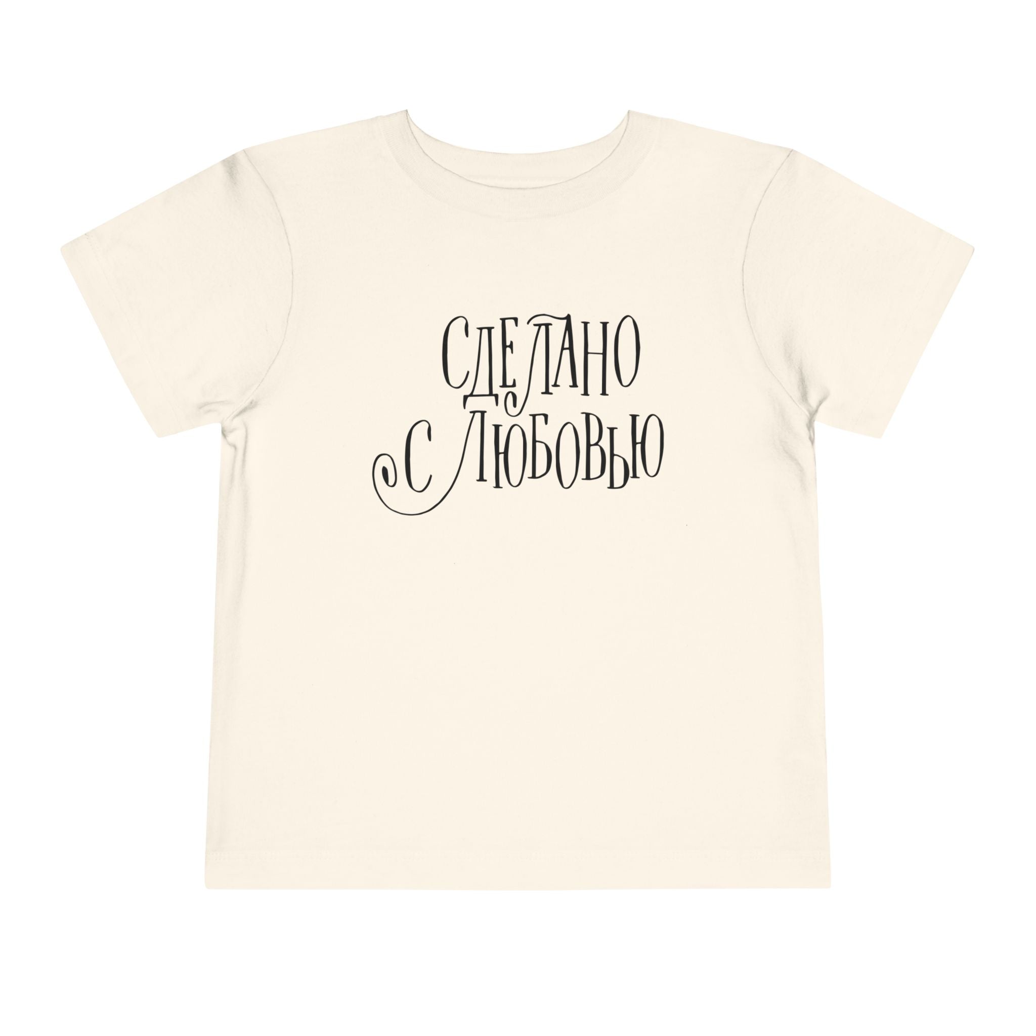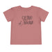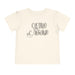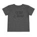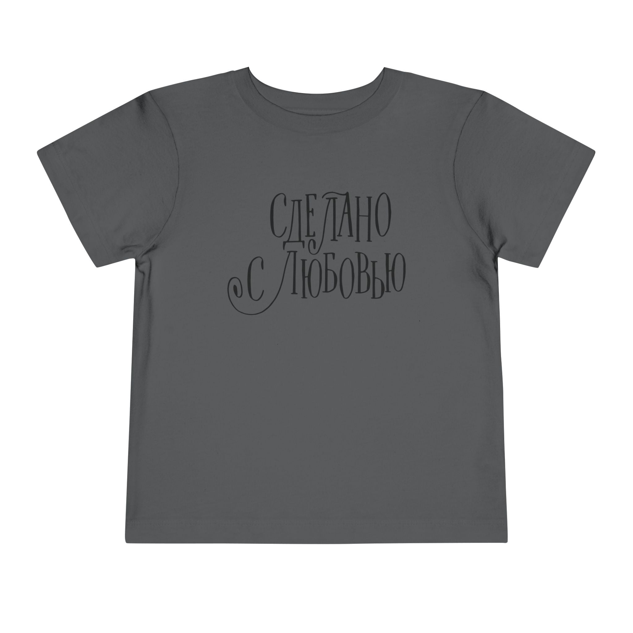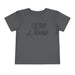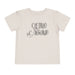 Soft, lightweight toddler tee with a simple, hand-lettered design across the chest. The slim side seams give it a tidy, comfortable shape that moves easily with little ones. Breathable airlume combed cotton feels gentle on delicate skin; heather options blend cotton and polyester for added stretch and durability. The label tears away cleanly so nothing rubs the neck. This shirt sits casually in the wardrobe — layered under a cardigan for cool mornings, paired with play-ready shorts in the park, or kept on for cozy family mornings at home. The understated script adds a quiet, personal touch that reads like a note sewn into the day.