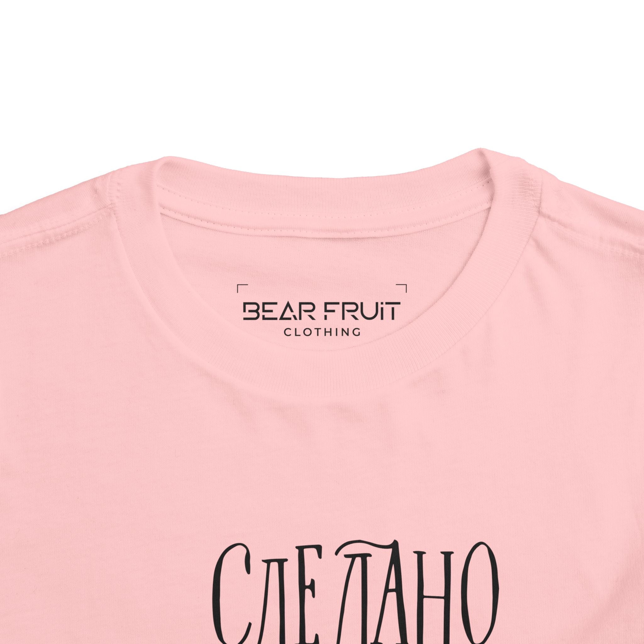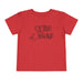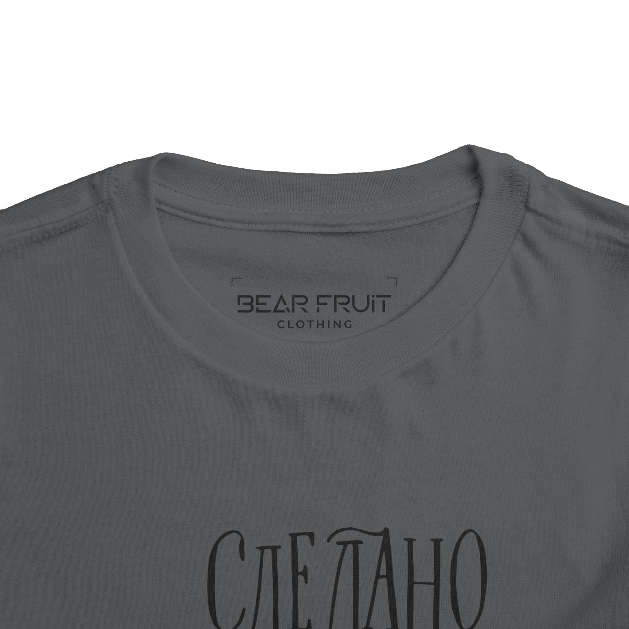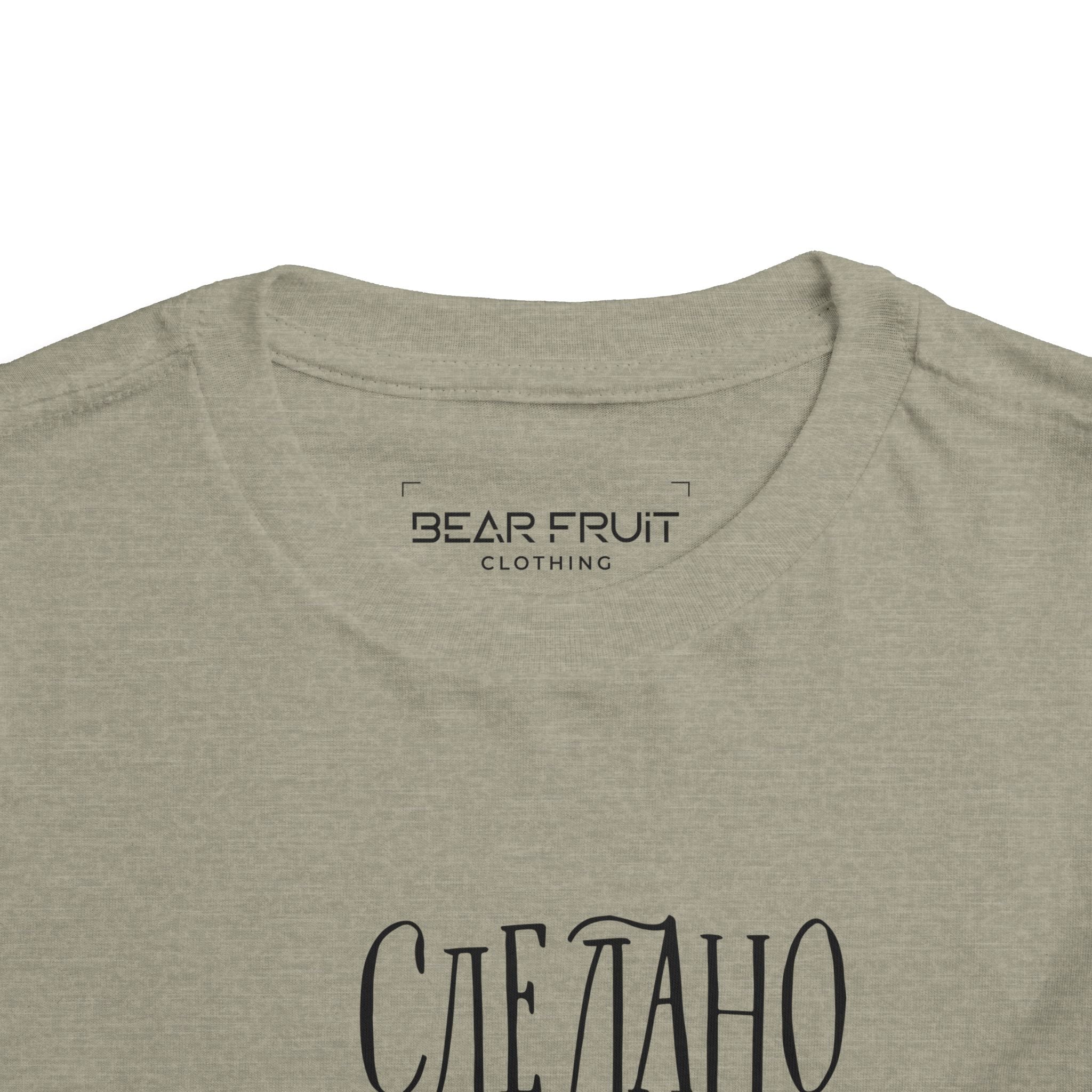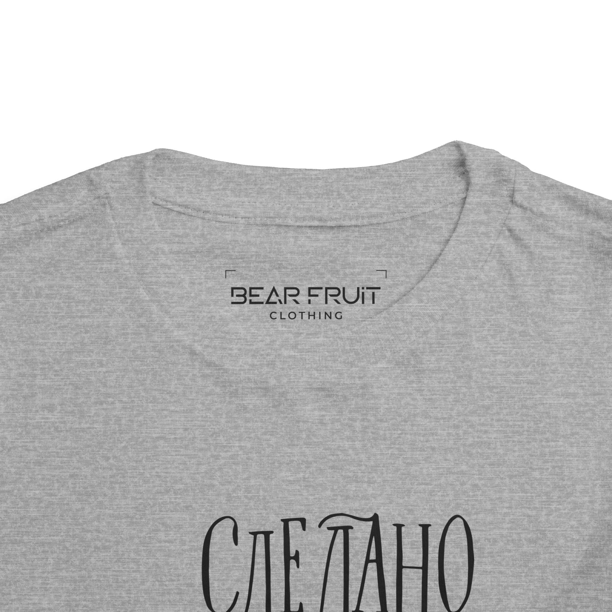 Soft, lightweight toddler tee with a simple, hand-lettered design across the chest. The slim side seams give it a tidy, comfortable shape that moves easily with little ones. Breathable airlume combed cotton feels gentle on delicate skin; heather options blend cotton and polyester for added stretch and durability. The label tears away cleanly so nothing rubs the neck. This shirt sits casually in the wardrobe — layered under a cardigan for cool mornings, paired with play-ready shorts in the park, or kept on for cozy family mornings at home. The understated script adds a quiet, personal touch that reads like a note sewn into the day.