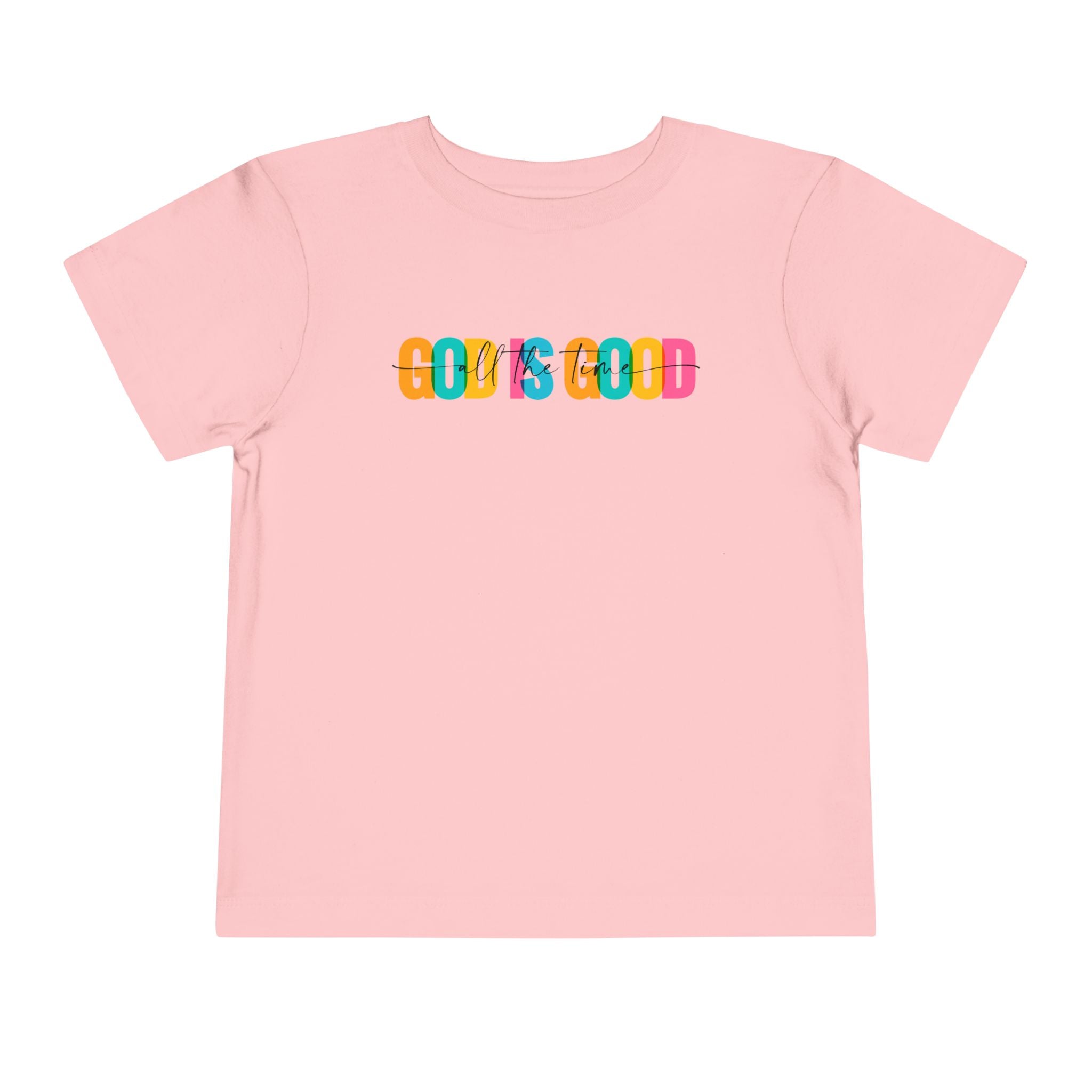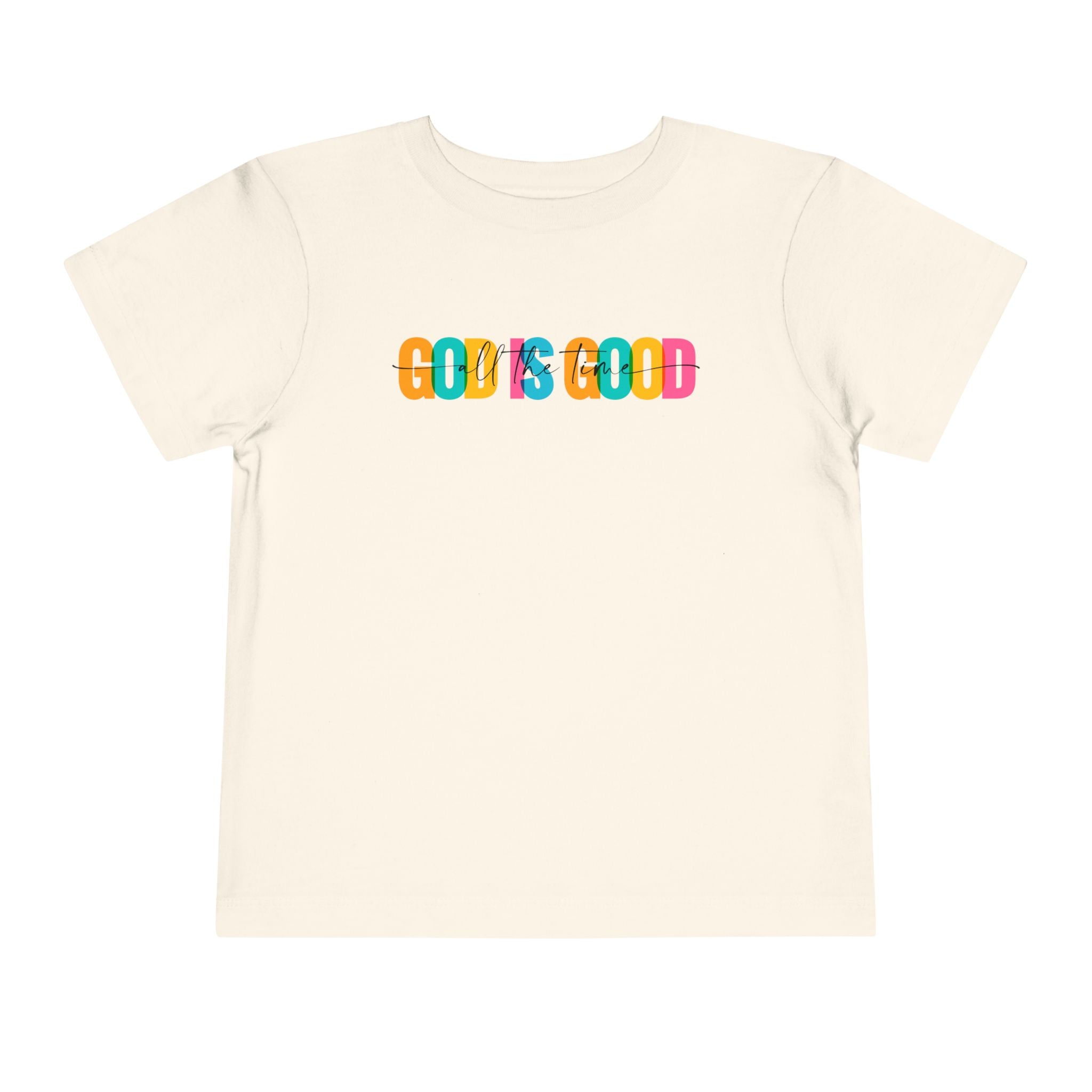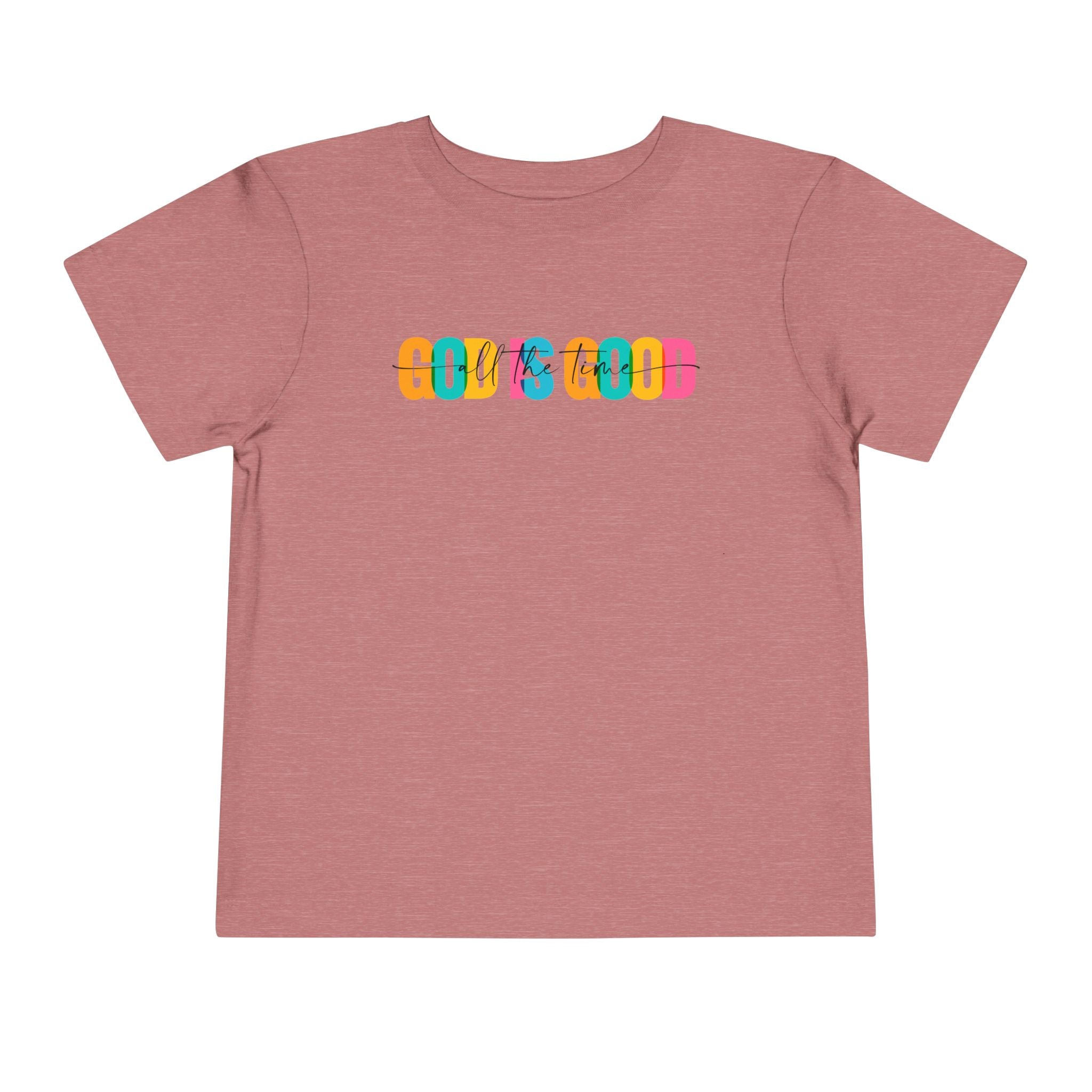 A soft, lightweight toddler tee that shares a bright, hopeful message. The small, colorful “GOD IS GOOD” print sits across the chest in playful, layered letters — cheerful and gentle against the white fabric. The feel is airy and comfortable, meant for rambunctious playtimes, quiet prayers, and everything in between. It layers easily under sweaters or wears alone on warm days, carrying warmth and faith in a kid-friendly palette.
