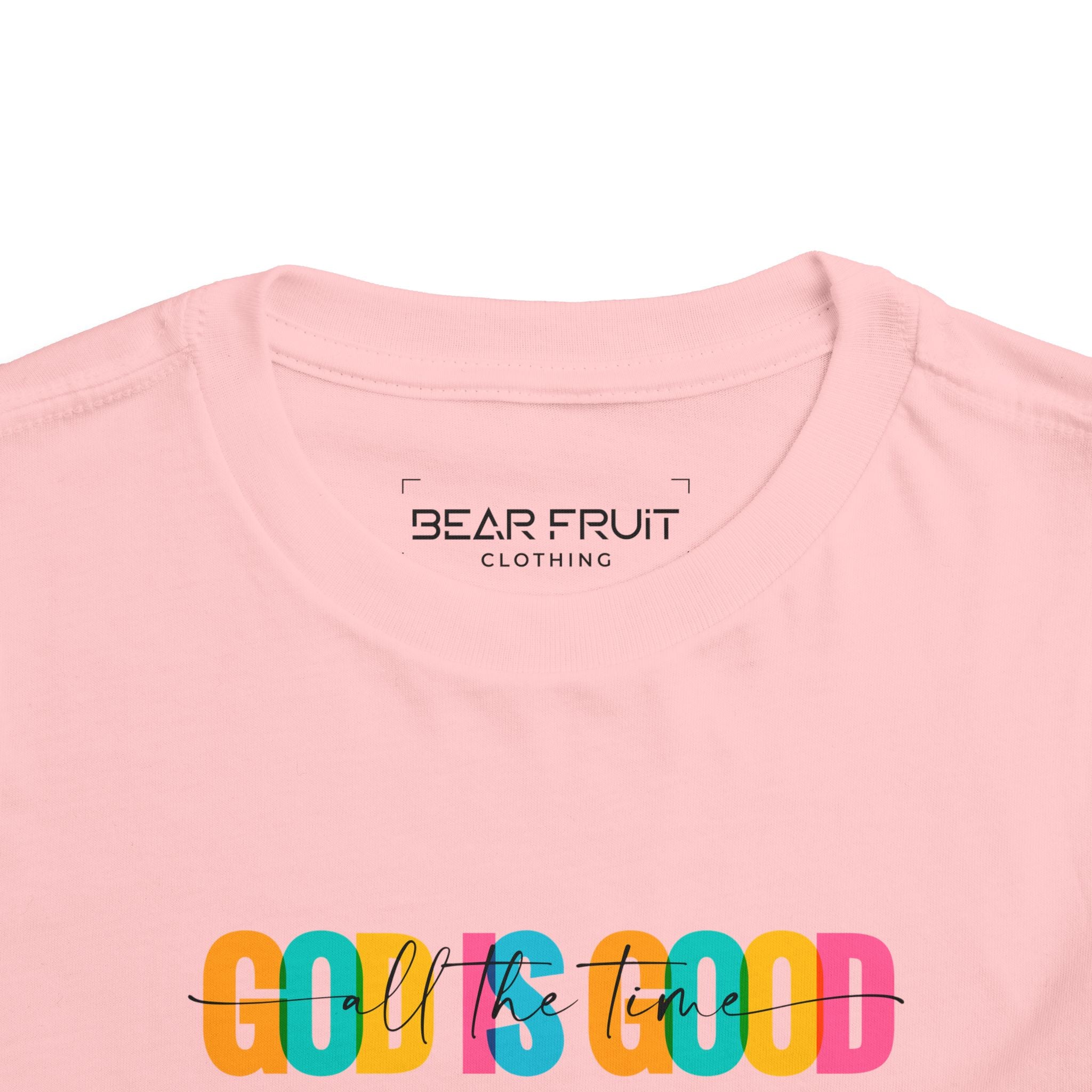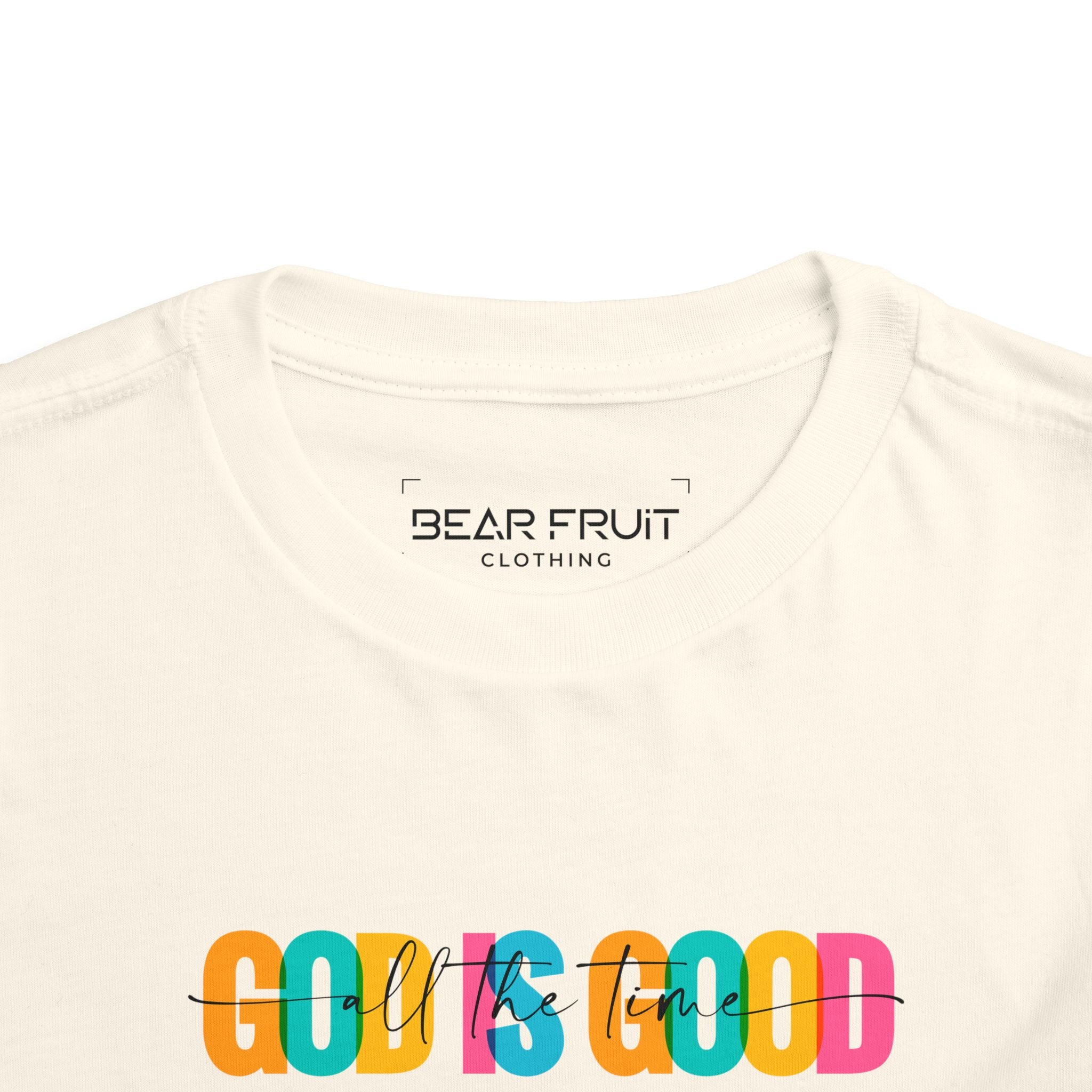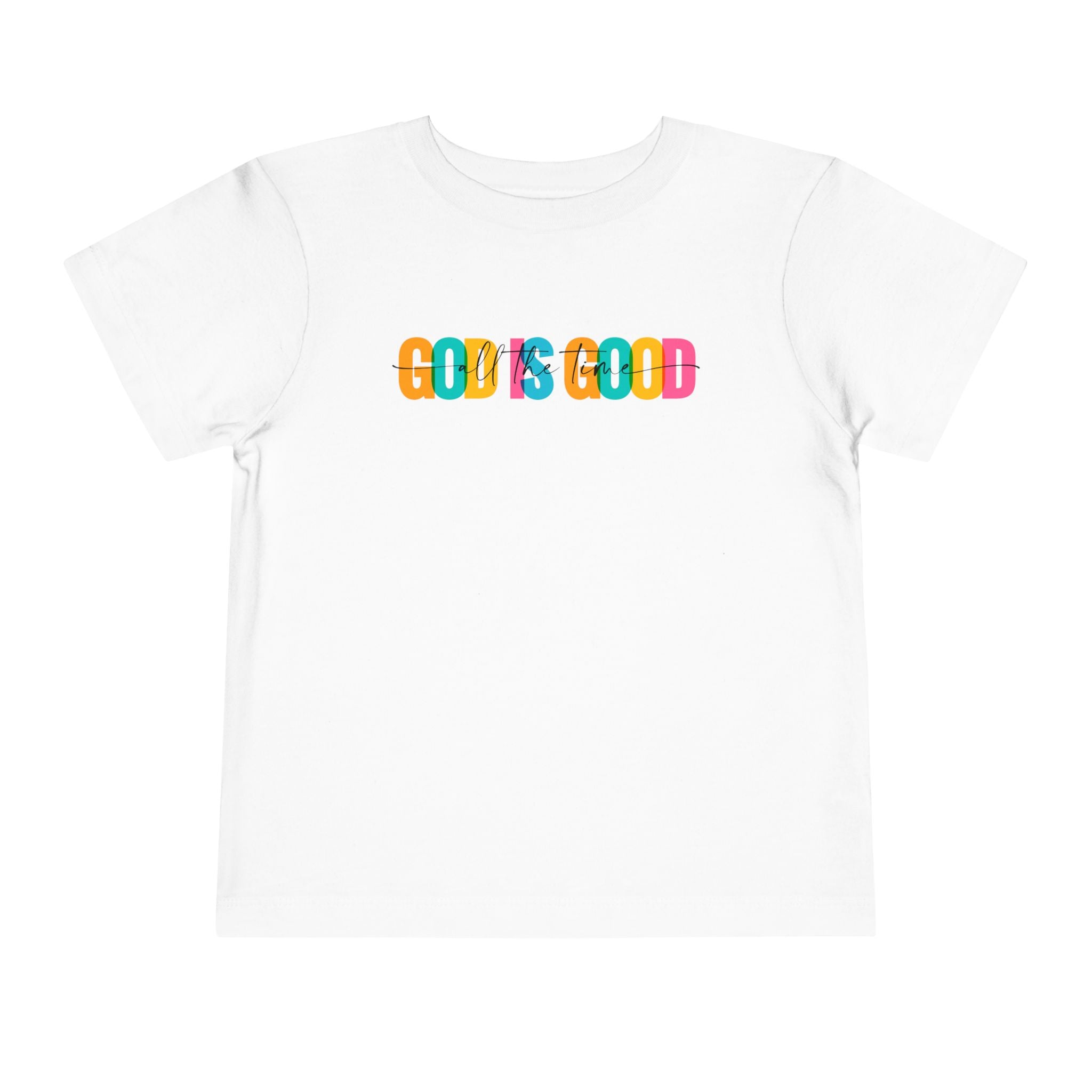 A soft, lightweight toddler tee that shares a bright, hopeful message. The small, colorful “GOD IS GOOD” print sits across the chest in playful, layered letters — cheerful and gentle against the white fabric. The feel is airy and comfortable, meant for rambunctious playtimes, quiet prayers, and everything in between. It layers easily under sweaters or wears alone on warm days, carrying warmth and faith in a kid-friendly palette.