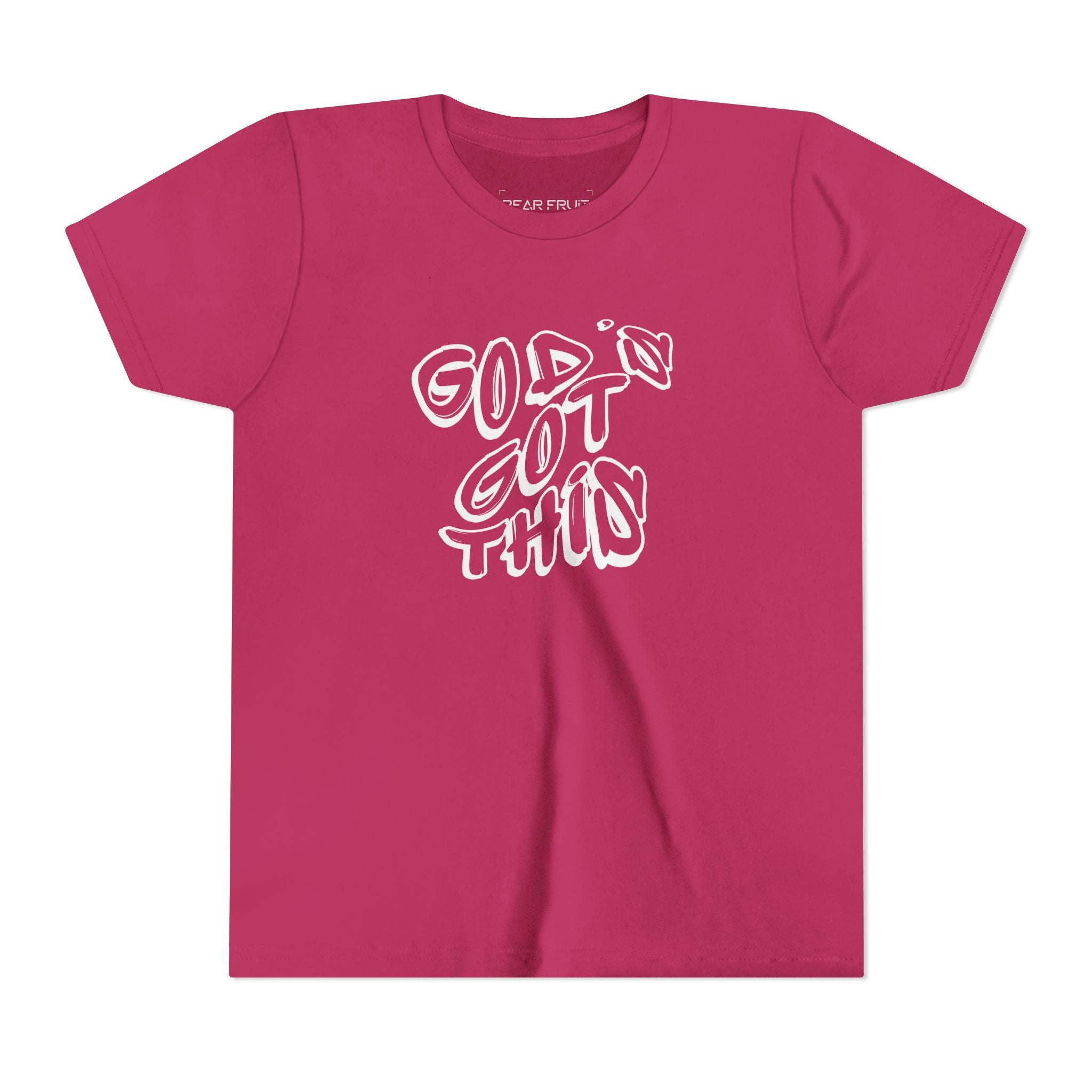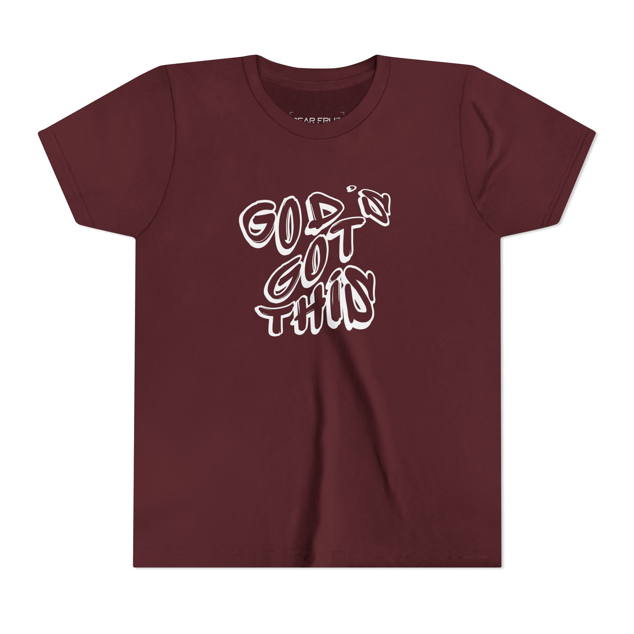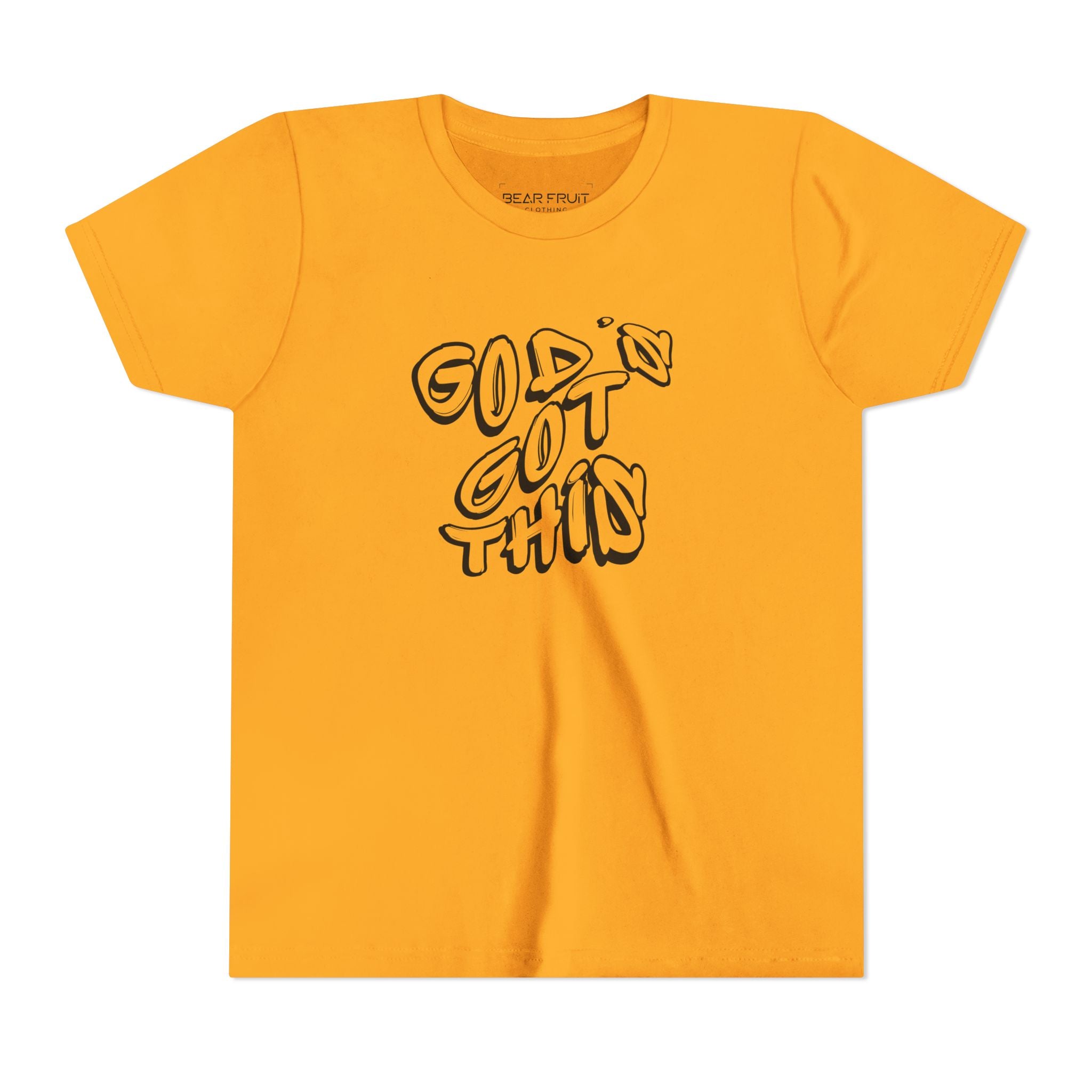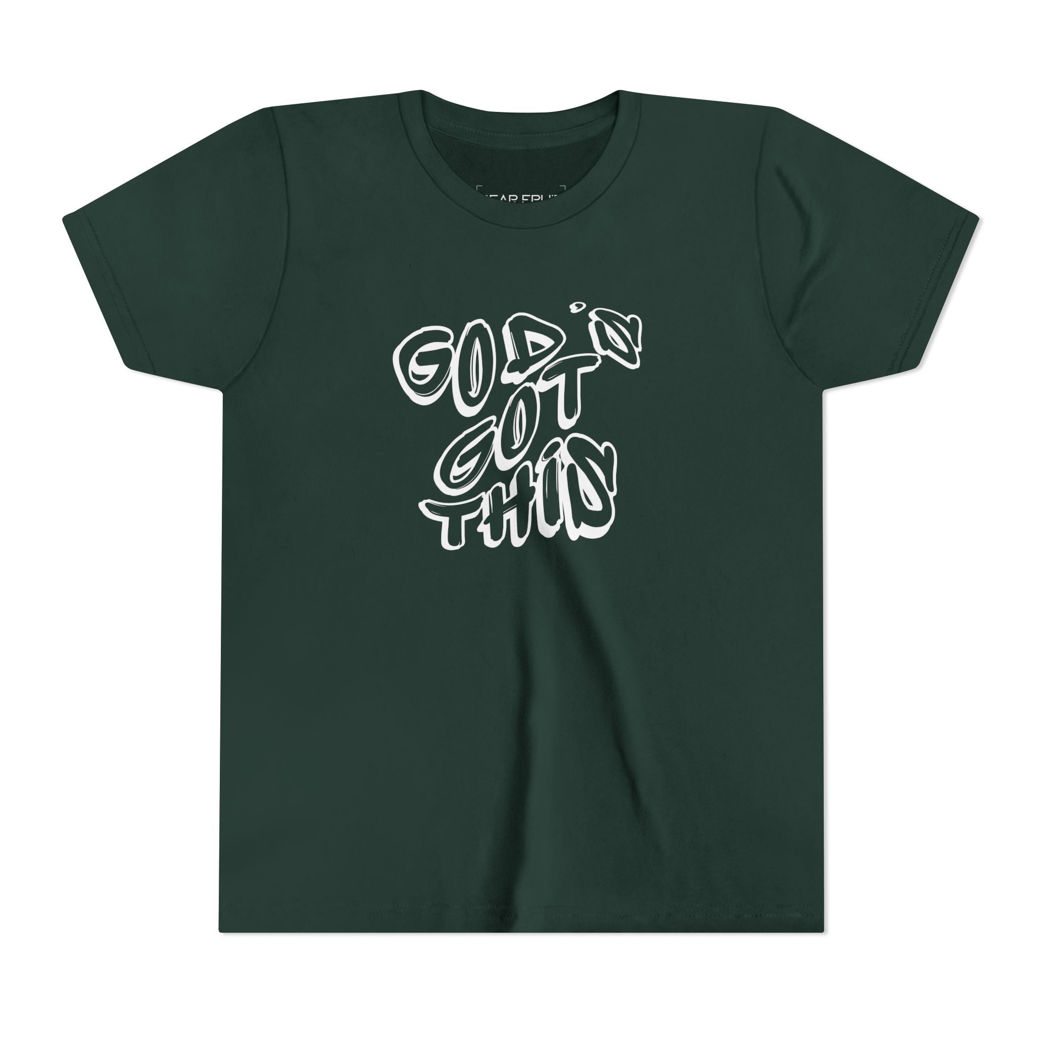This lightweight youth tee carries a quiet, confident energy. Soft, airlume-combed cotton feels gentle on young skin while the clean crew neckline and retail fit keep the silhouette modern and easy to layer. The hand-drawn, graffiti-inspired “God’s Got This” artwork sits on the chest like a small, steady reminder — subtle, honest, and reassuring. Wear it to church youth nights, family gatherings, or everyday adventures; it settles into ordinary days and helps steady the mood when a little courage is needed. Thoughtful details — side seams, shoulder tape, and a ribbed collar — keep the shirt looking sharp wash after wash, and the tear-away DTF neck label ensures nothing scratches or distracts. For caregivers who want comfort and quiet faith-forward messaging, this tee blends soft performance and mindful design into something kids will reach for again and again.