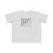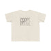 Soft, lightweight, and quietly stylish — this toddler tee brings a gentle, modern voice to everyday play. The slim, tall lettering sits centered on a classic white canvas, offering a calm and confident statement without shouting. It moves easily with little bodies: the light 4.5 oz fabric and classic fit stay comfortable through storytime, park runs, and nap transitions. Built with thoughtful construction — side seams, shoulder tape, and a ribbed knit collar — it keeps its shape wash after wash. The tear-away label and true-to-size cut make dressing stress-free, leaving room for layering under sweaters or pairing with favorite shorts. It’s a subtle, graceful piece that lives in the day-to-day and grows with their small adventures.
