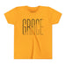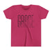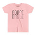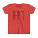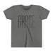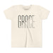 Lightweight, soft, and thoughtfully made — this youth tee carries a clean, modern graphic that reads as quiet and confident. The slim, tall lettering with a subtle diagonal cut feels fresh and minimal, the kind of design that sits comfortably in a school lunchroom, a Sunday service, or a weekend playdate. Breathable airlume-combed cotton and a retail fit give movement and shape without stiffness. Small details — ribbed collar, shoulder tape, side seams and a tear-away neck label — keep the shirt looking neat wash after wash. It’s a calm, wearable piece that layers easily under jackets or stands alone as a simple statement.