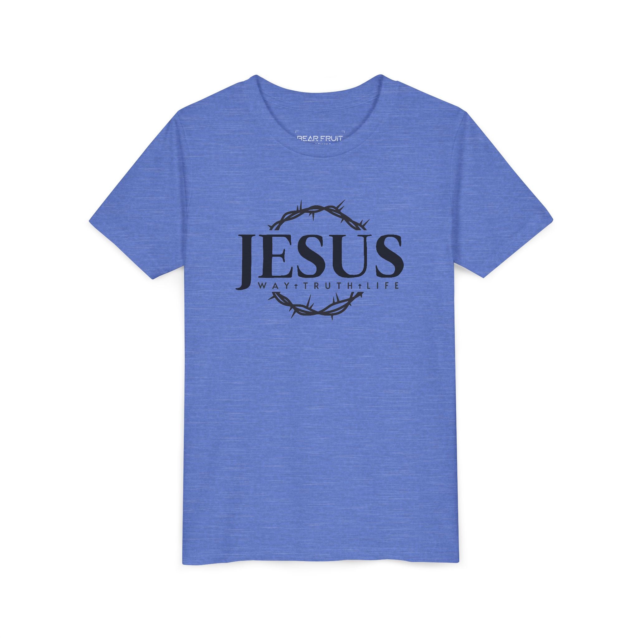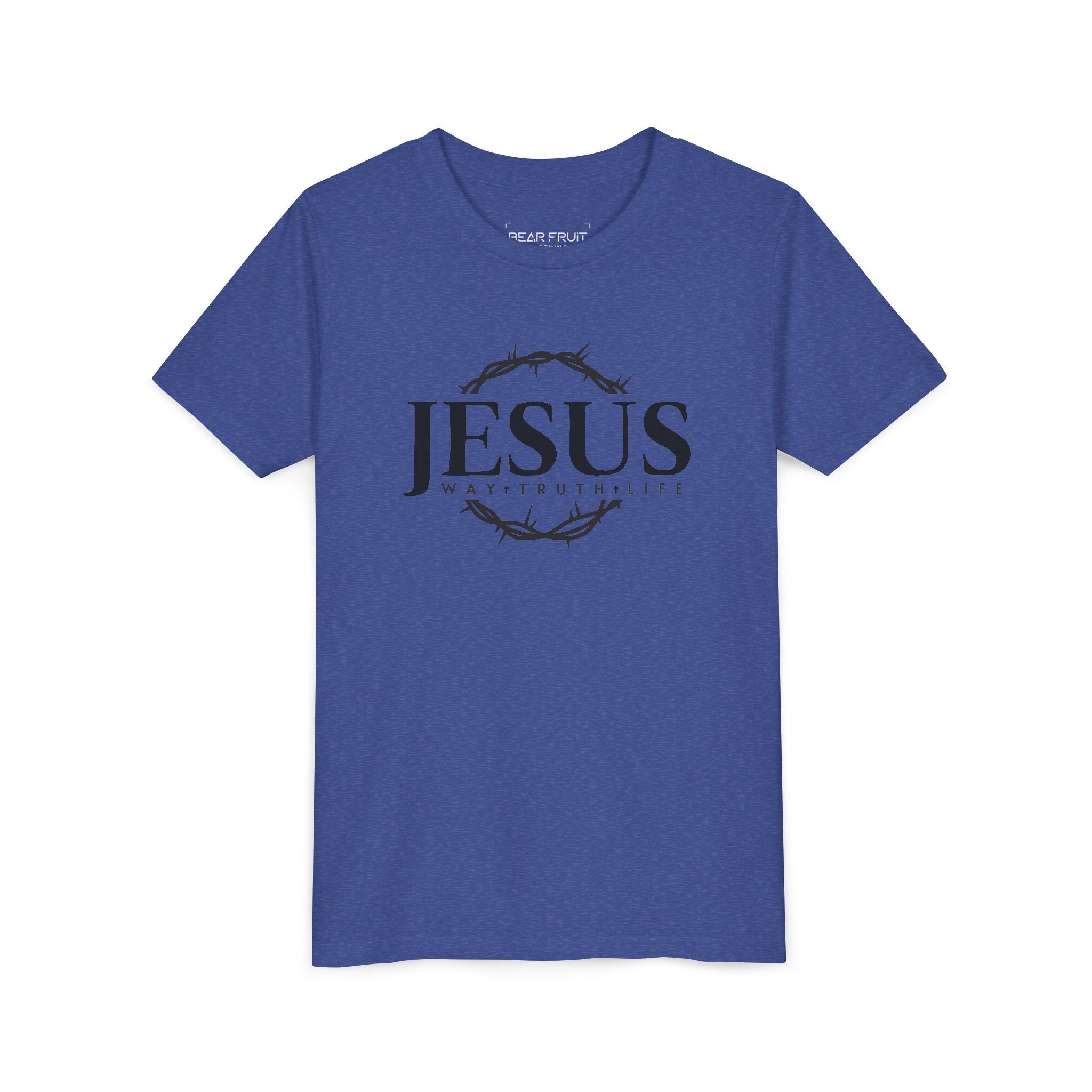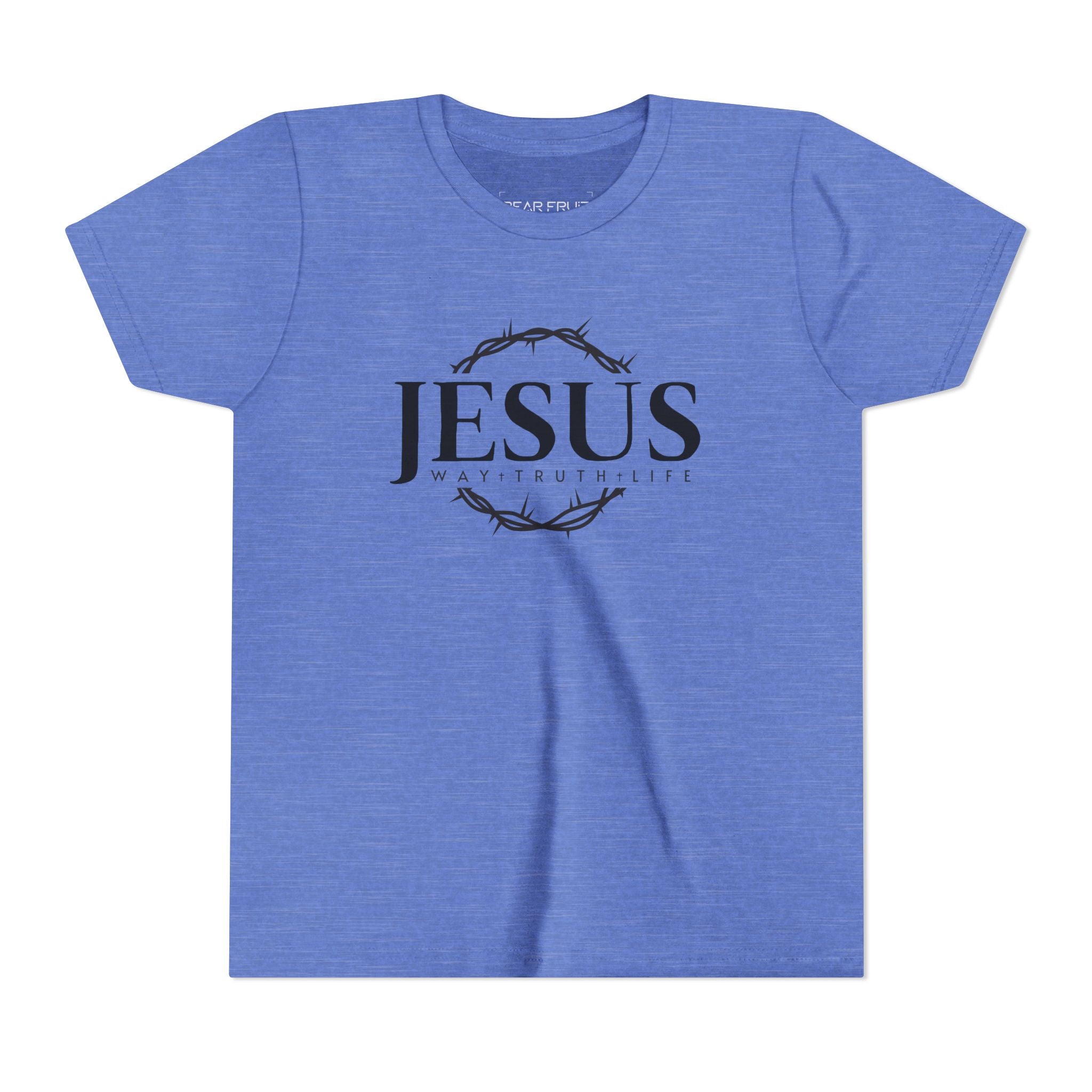 Soft, lightweight, and thoughtfully made — this youth tee carries a quiet, confident faith. The simple JESUS design, framed by a delicate crown of thorns, sits cleanly on the chest so kids can wear their beliefs with calm dignity. Breathable airlume-combed cotton and a retail fit make it comfortable for school days, Sunday services, youth group meetups, or family gatherings. The tear-away label and ribbed collar keep it comfortable all day. It’s a subtle, age-appropriate way for young believers to express devotion while staying comfortable and active.