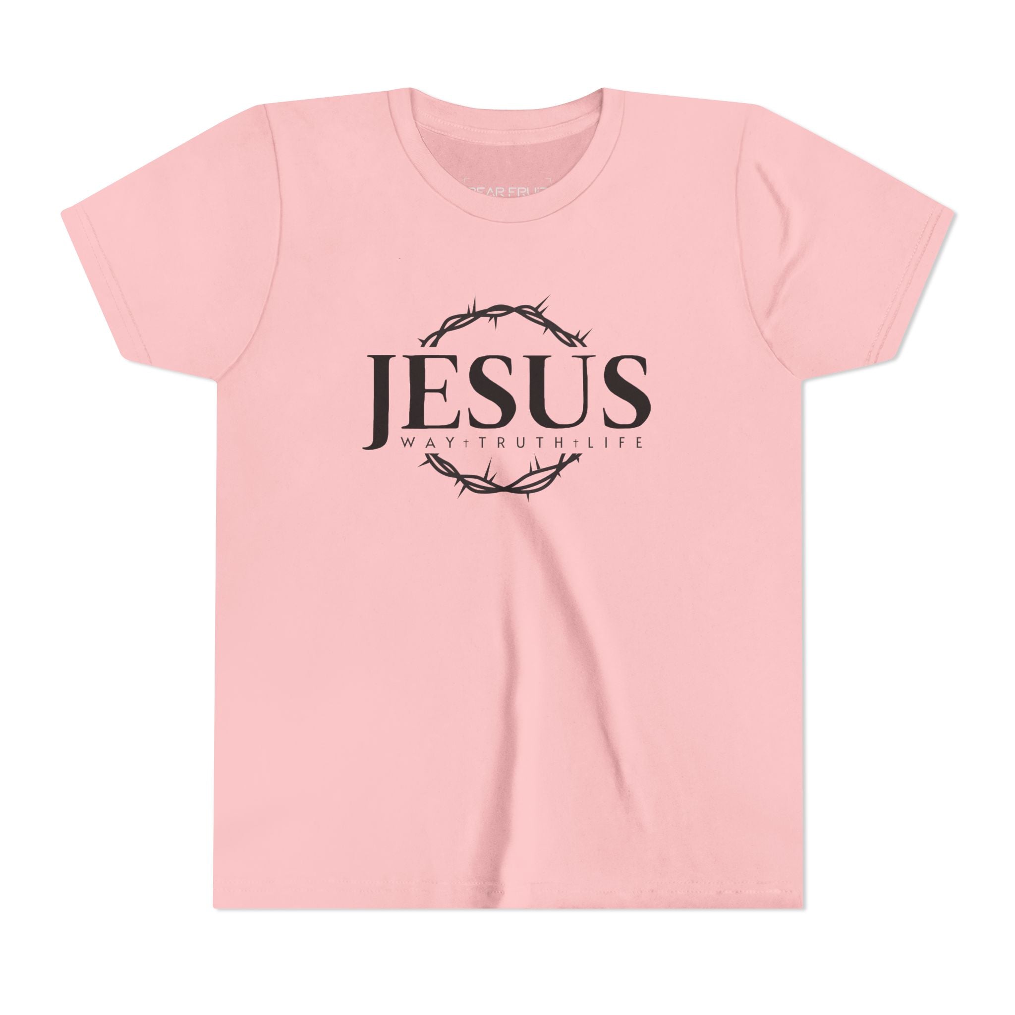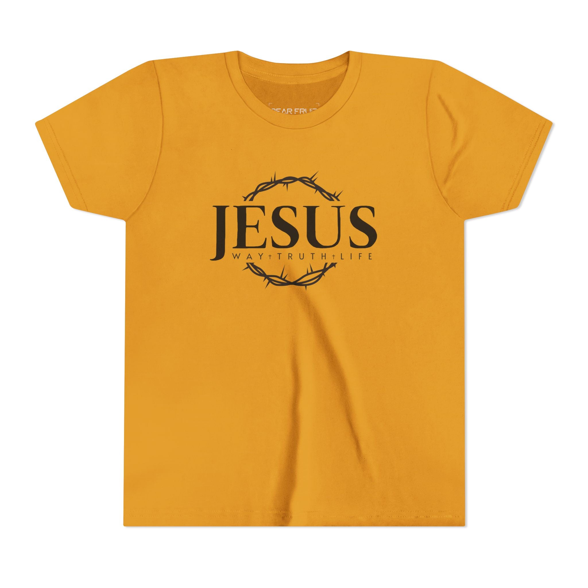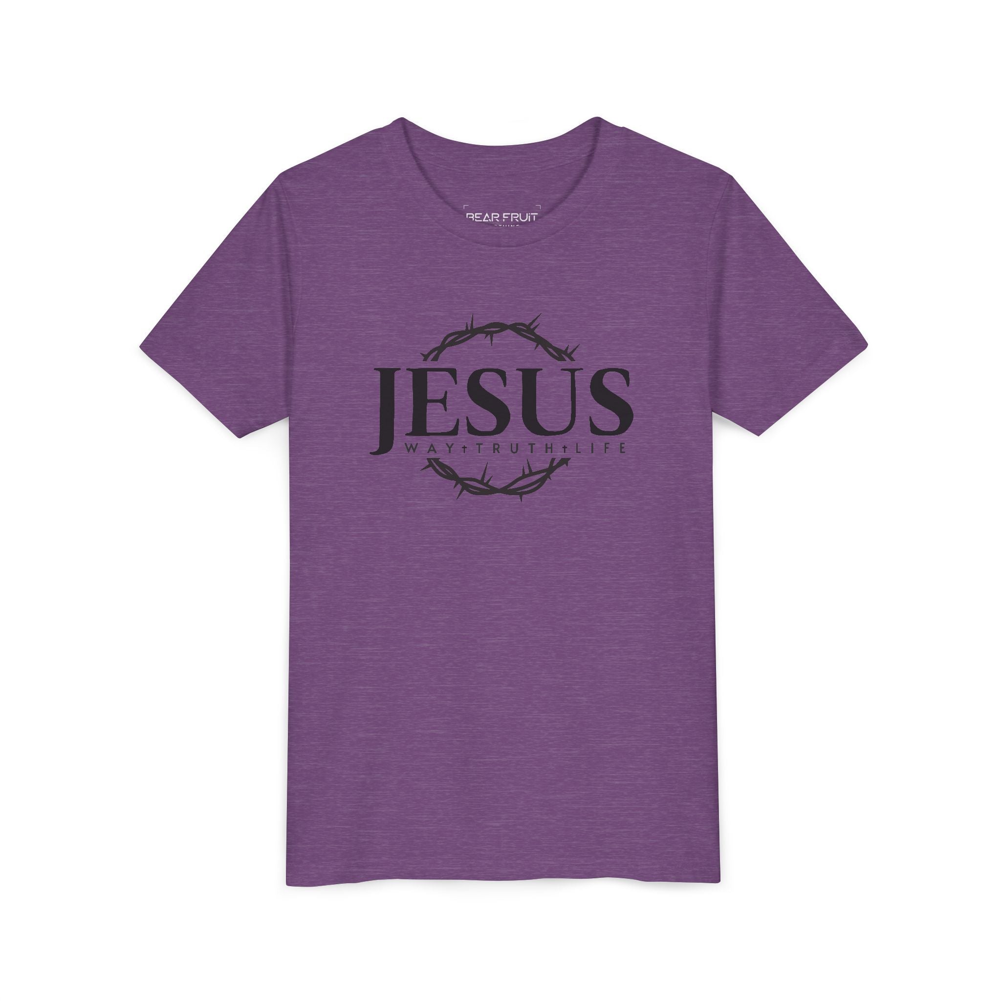 Soft, lightweight, and thoughtfully made — this youth tee carries a quiet, confident faith. The simple JESUS design, framed by a delicate crown of thorns, sits cleanly on the chest so kids can wear their beliefs with calm dignity. Breathable airlume-combed cotton and a retail fit make it comfortable for school days, Sunday services, youth group meetups, or family gatherings. The tear-away label and ribbed collar keep it comfortable all day. It’s a subtle, age-appropriate way for young believers to express devotion while staying comfortable and active.