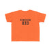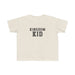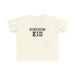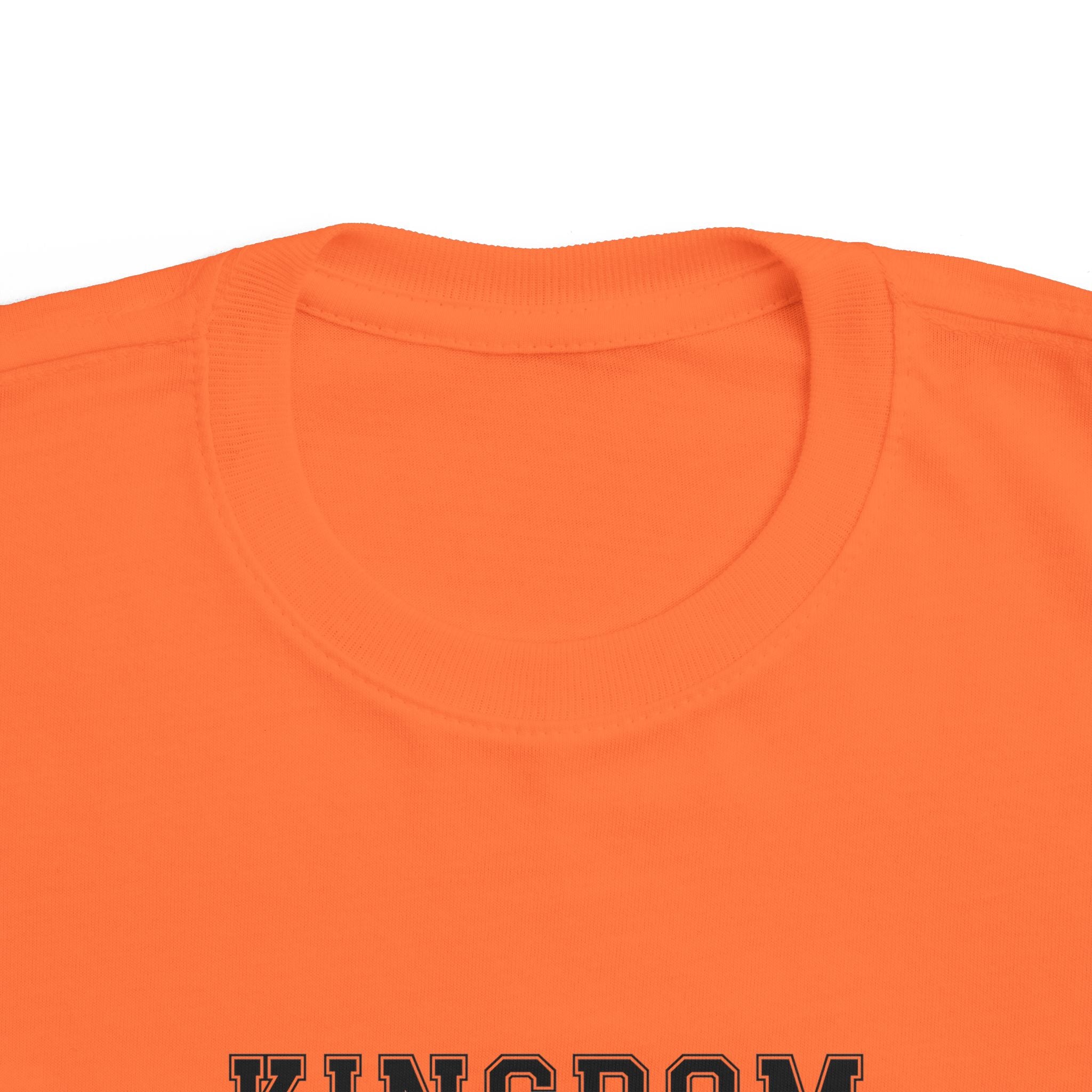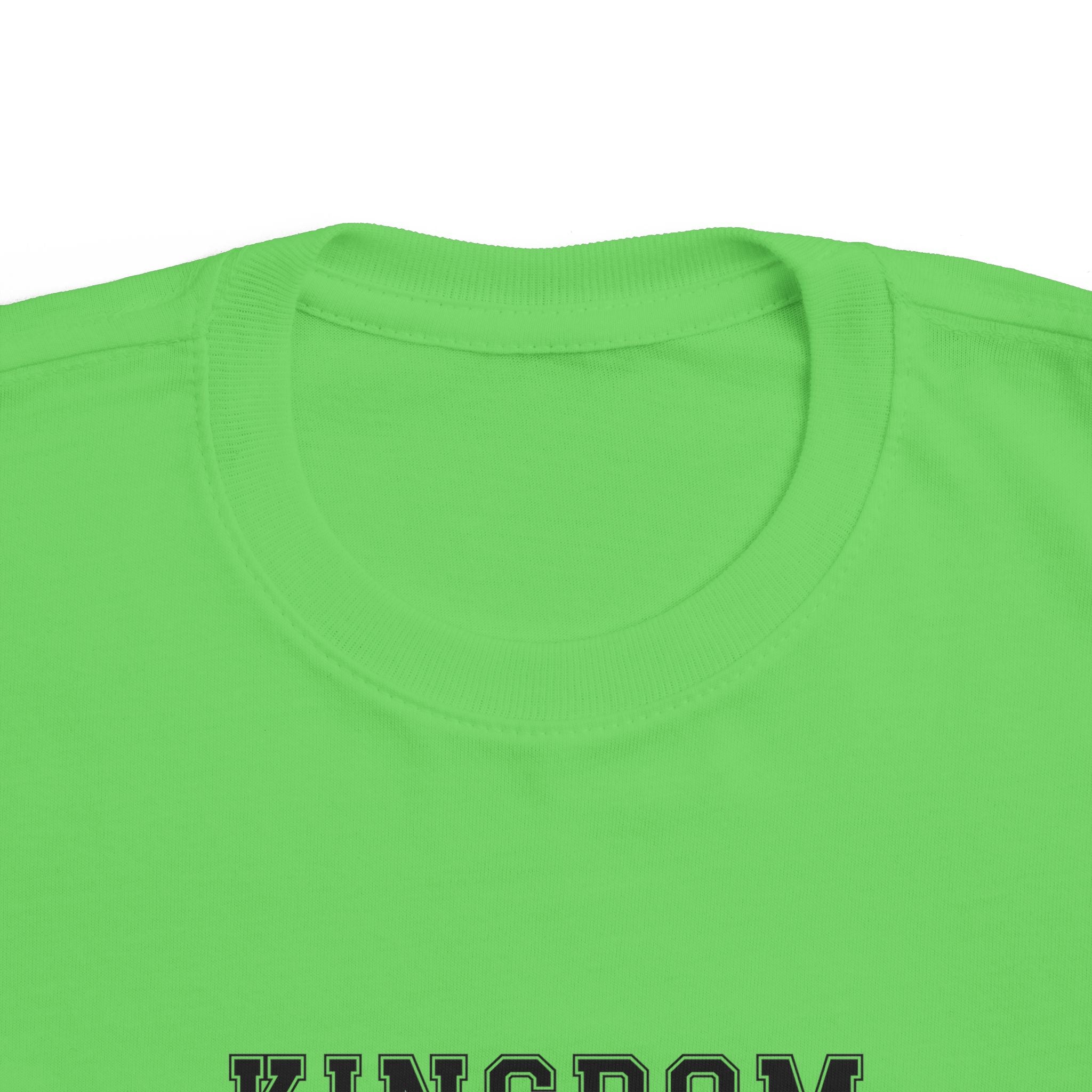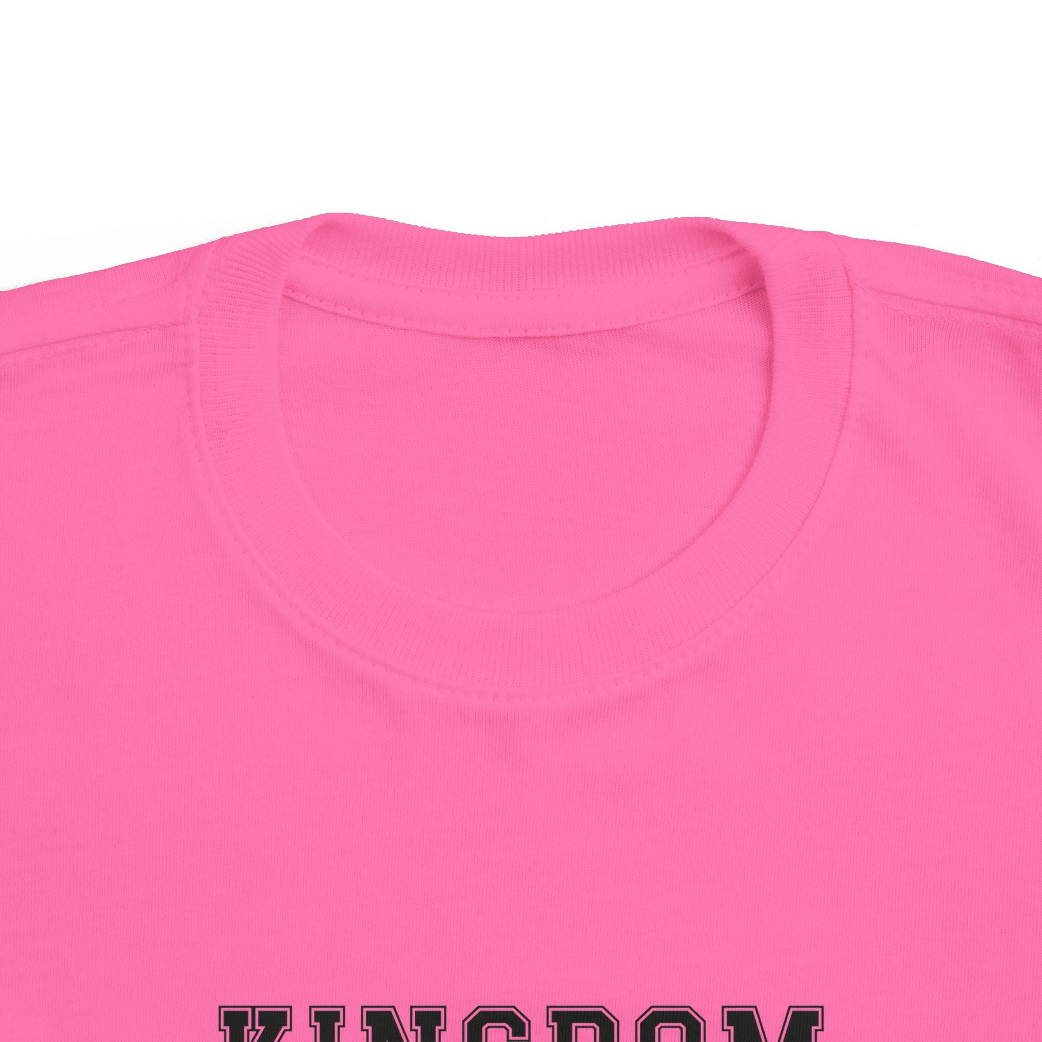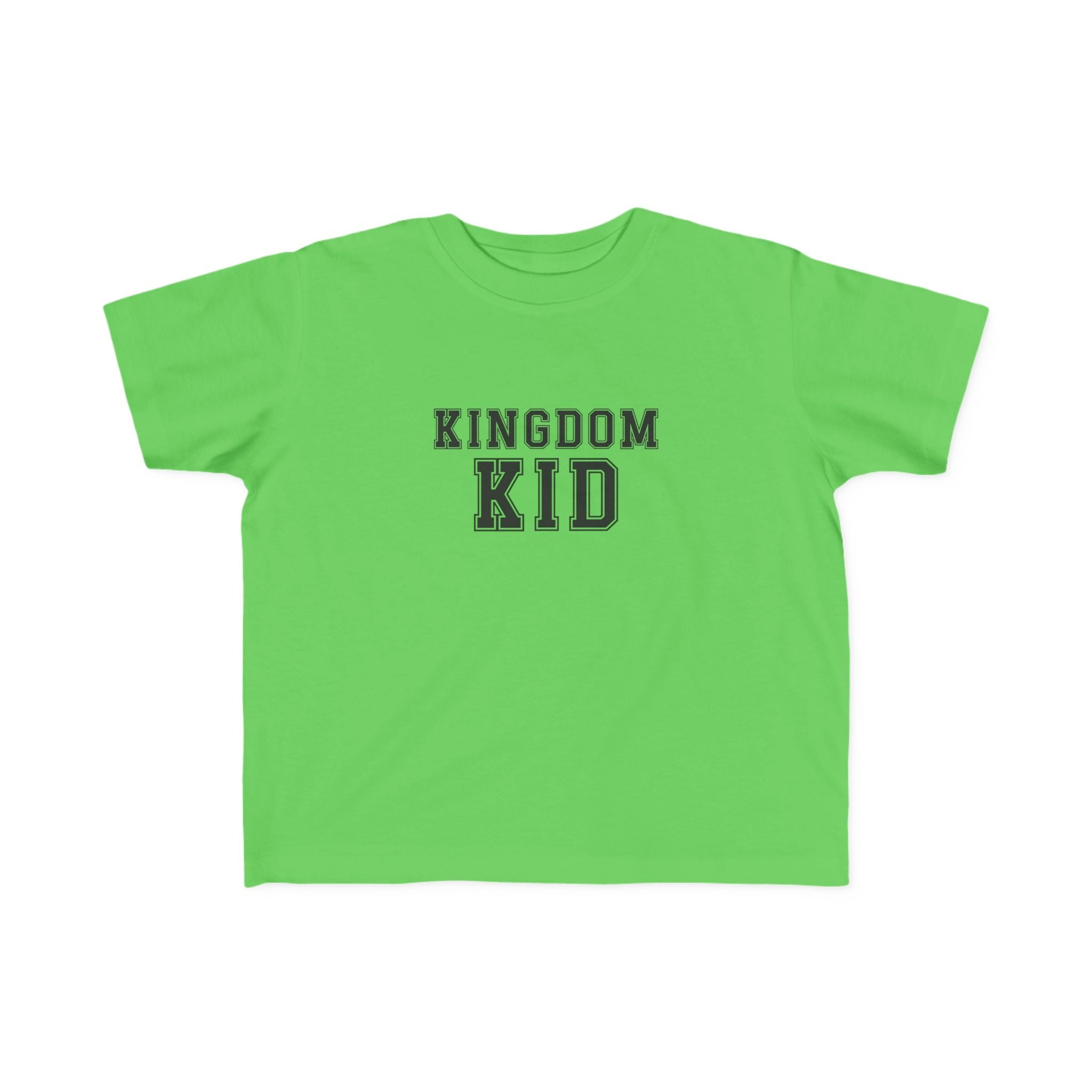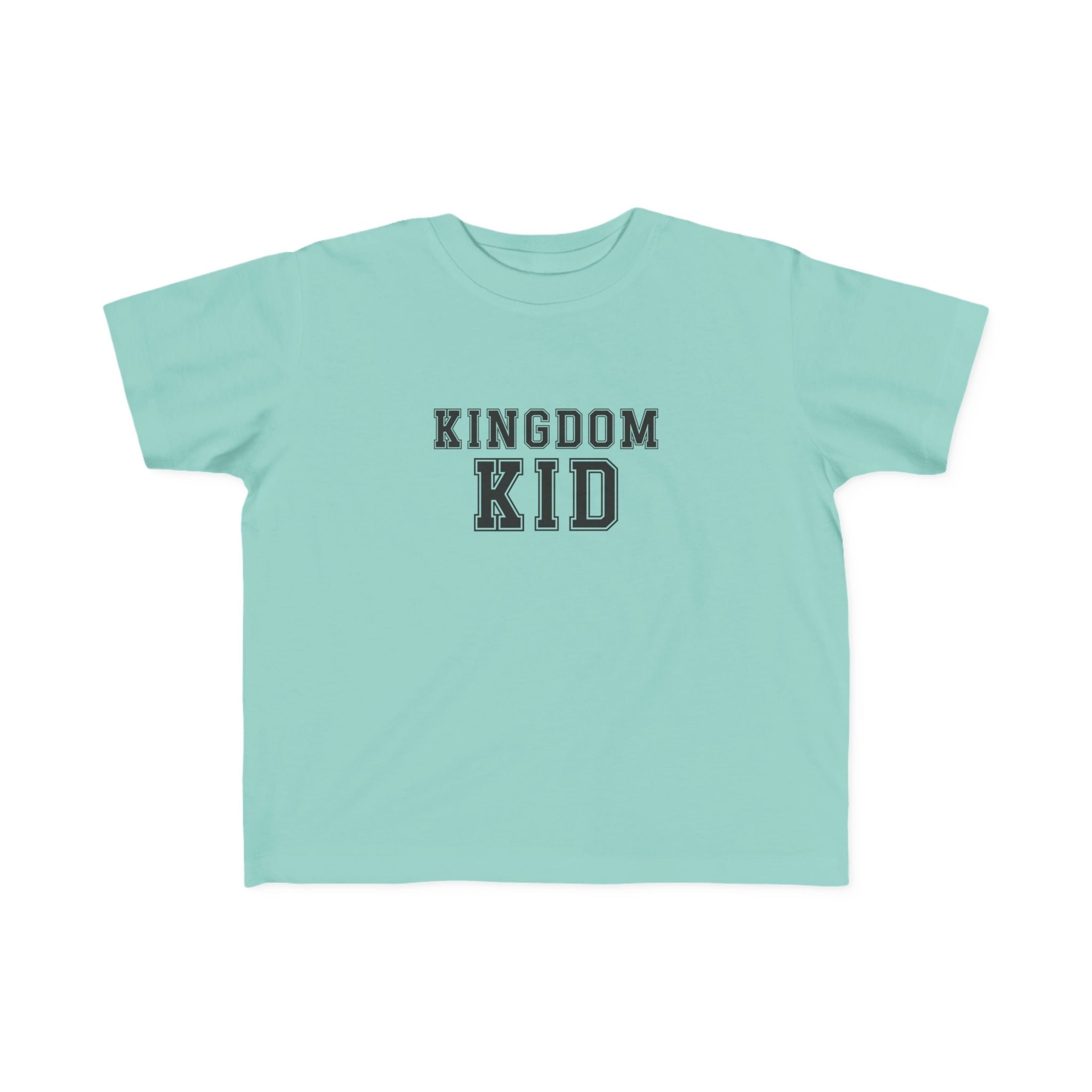 Soft, breathable toddler tee made to move with little ones and wear well over time. The lightweight cotton knit feels gentle on sensitive skin while the ribbed collar and shoulder tape keep the neckline and shape steady through washes and play. A classic, straight cut gives room for wiggles without looking oversized. The subtle collegiate-style lettering reads “Kingdom Kid,” lending quiet confidence and a sweet, faith-forward message that pairs easily with jeans, leggings, or layering under a hoodie for cooler days. Sized to run true to fit and finished with a tear-away label for extra comfort.