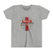 This lightweight youth tee carries a quiet, confident faith-forward message—that a child belongs to Jesus—with vintage-inspired lettering and a distressed wooden cross graphic. The soft airlume-combed cotton feels gentle on sensitive skin, while the retail fit and crew neckline keep the silhouette modern and easy to layer. It’s the kind of shirt worn to Sunday classes, youth group outings, or everyday play—an understated way for kids to express their faith without fuss. The printed inner label and tear-away tag make it comfortable for active days, and the breathable fabric keeps kids cool during church events, family gatherings, or community service projects.