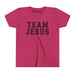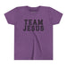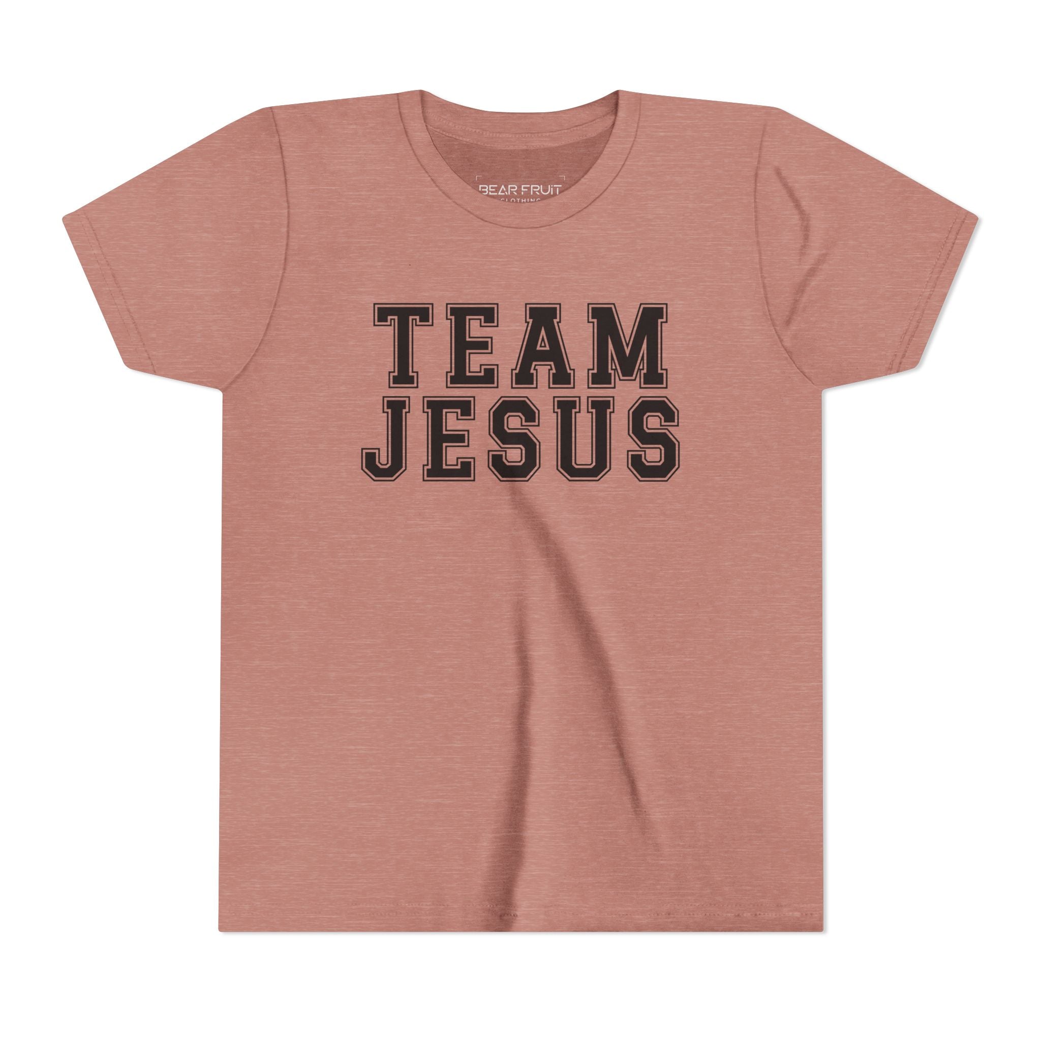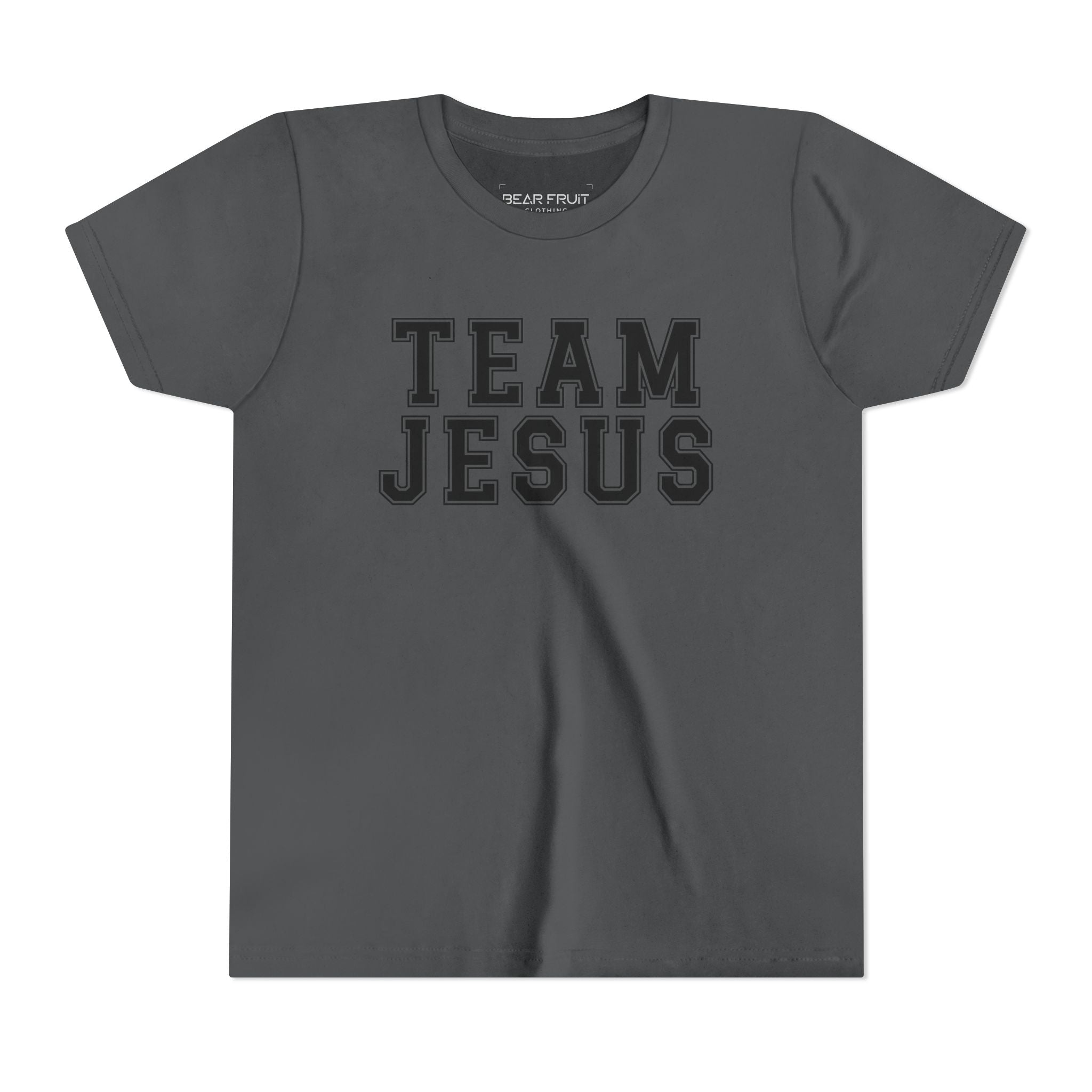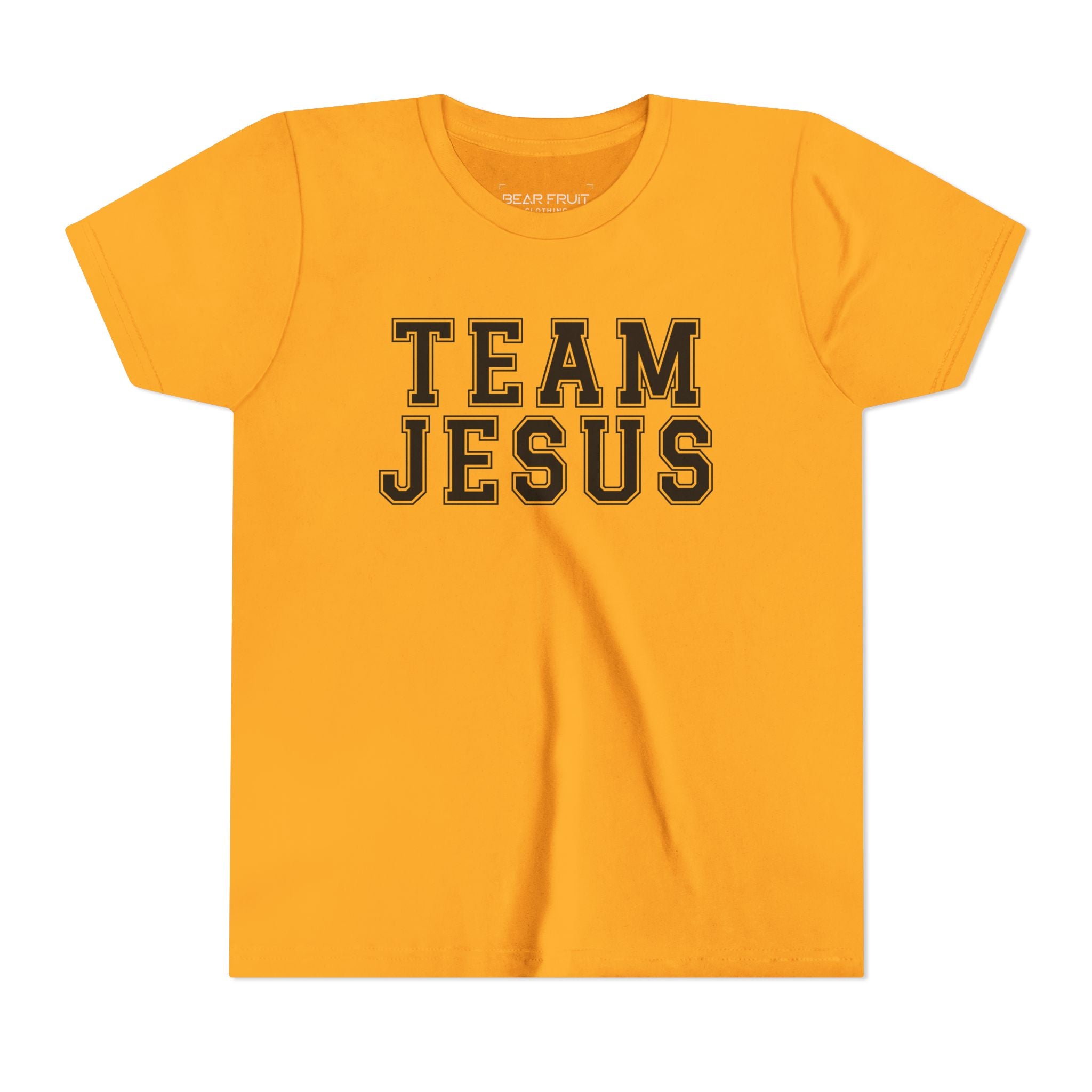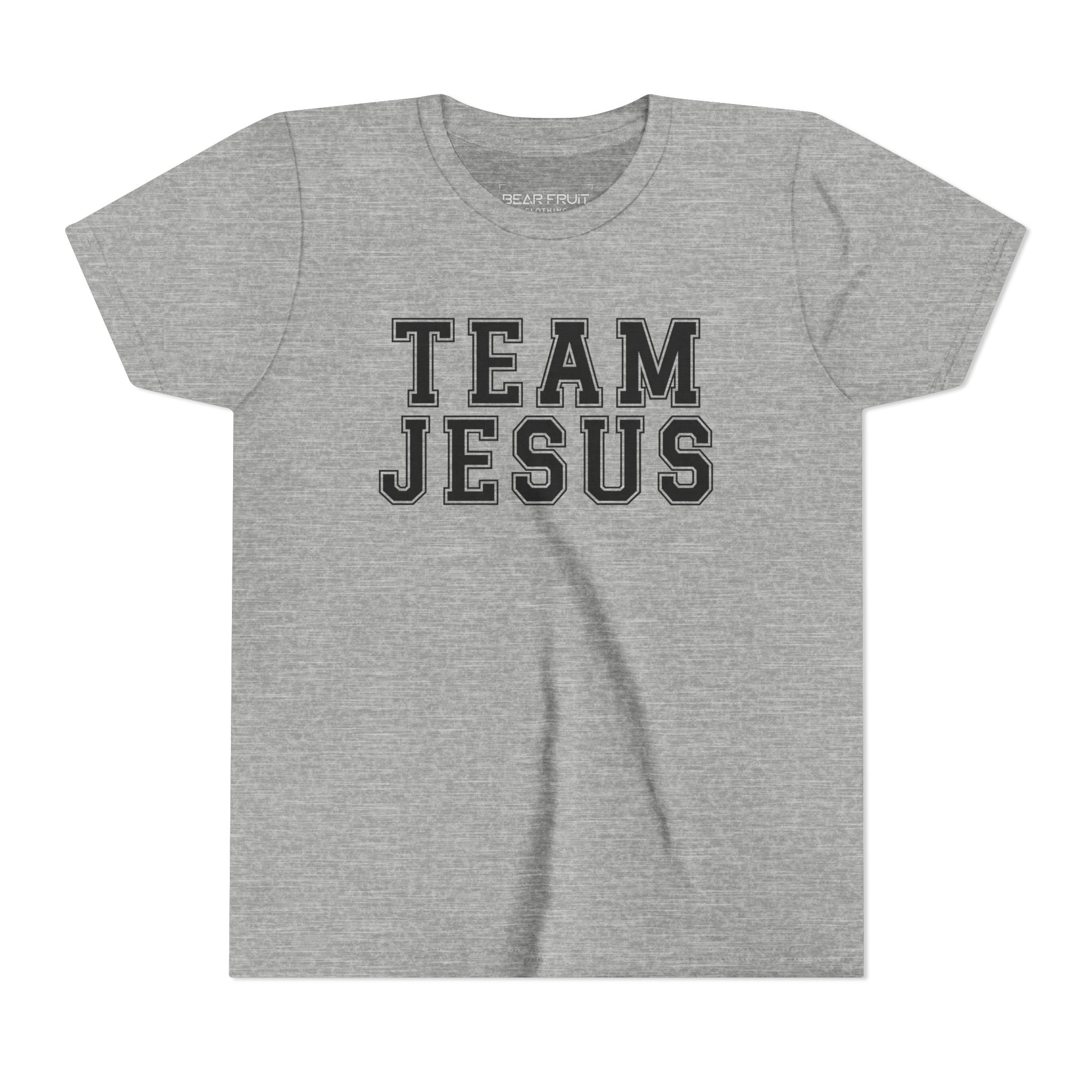 A soft, lightweight youth tee that carries a clear message: Team Jesus. The clean collegiate-style lettering sits bold across the chest on a breathable, airlume-combed cotton fabric that stays comfortable all day. Side seams and shoulder tape keep the shirt’s shape through active play and repeated washes. The retail fit and crew neckline give a modern, casual silhouette that layers easily under hoodies or wears alone for church events, youth group outings, or everyday faith-forward wear. Tear-away DTF neck labels remove irritation, and ethical manufacturing means you’re choosing a shirt made with care.
