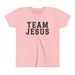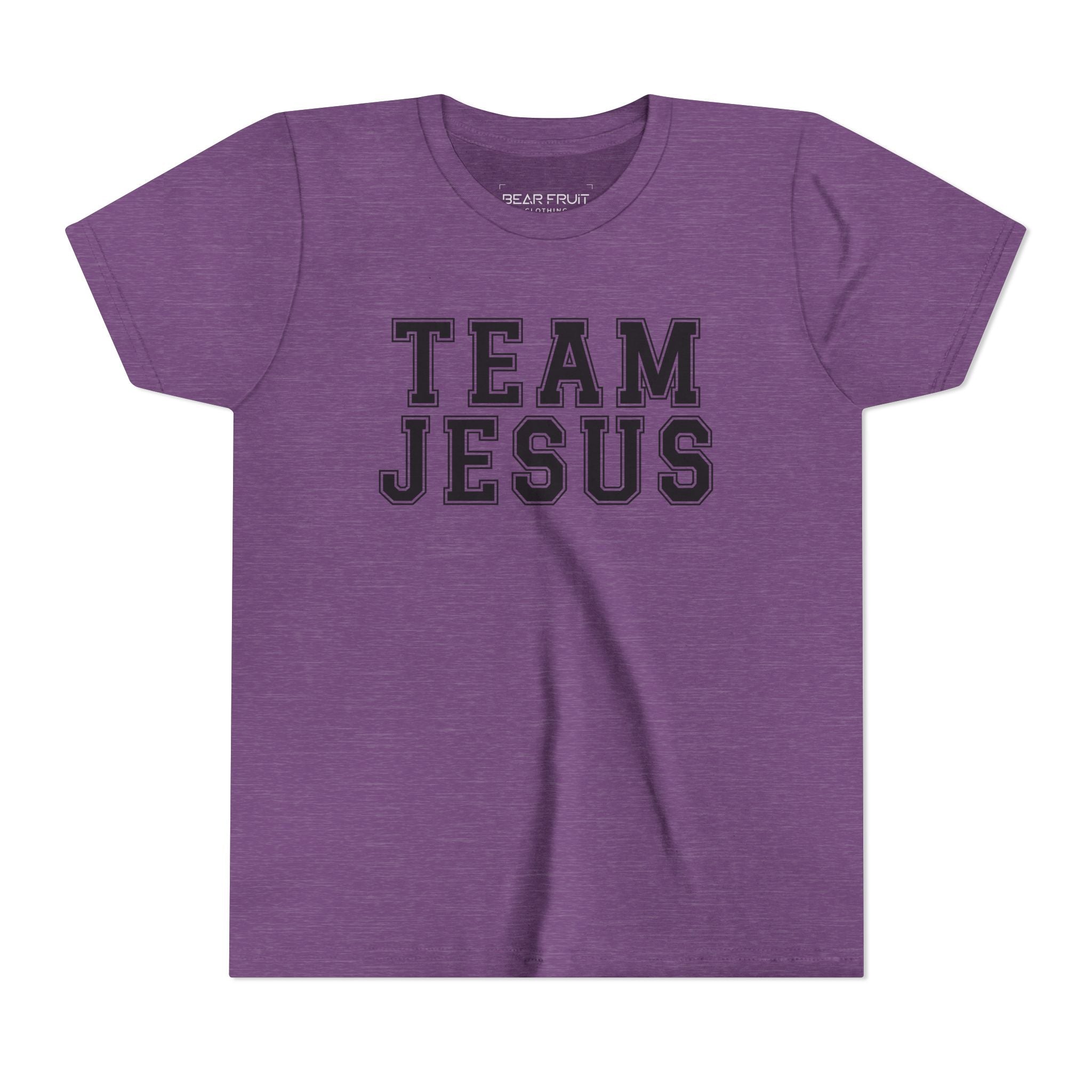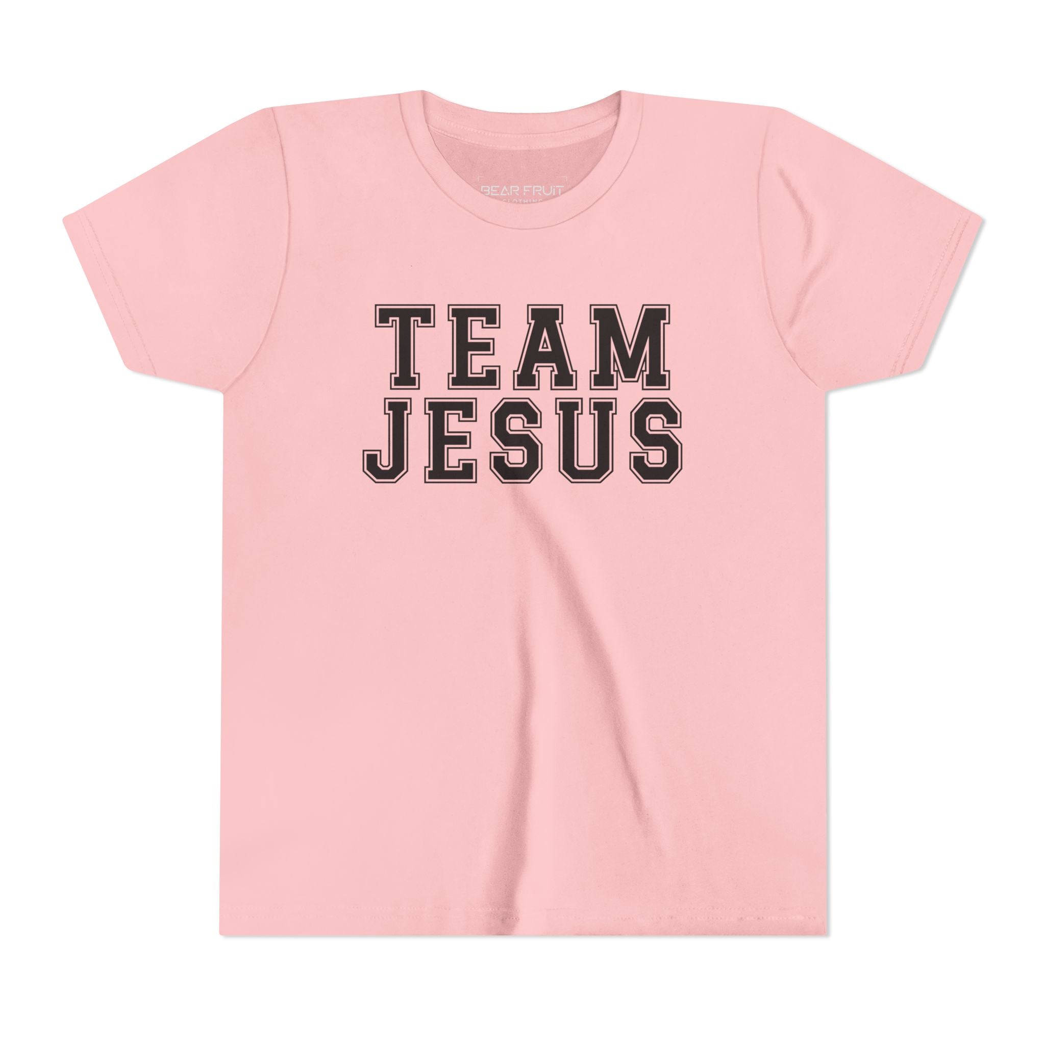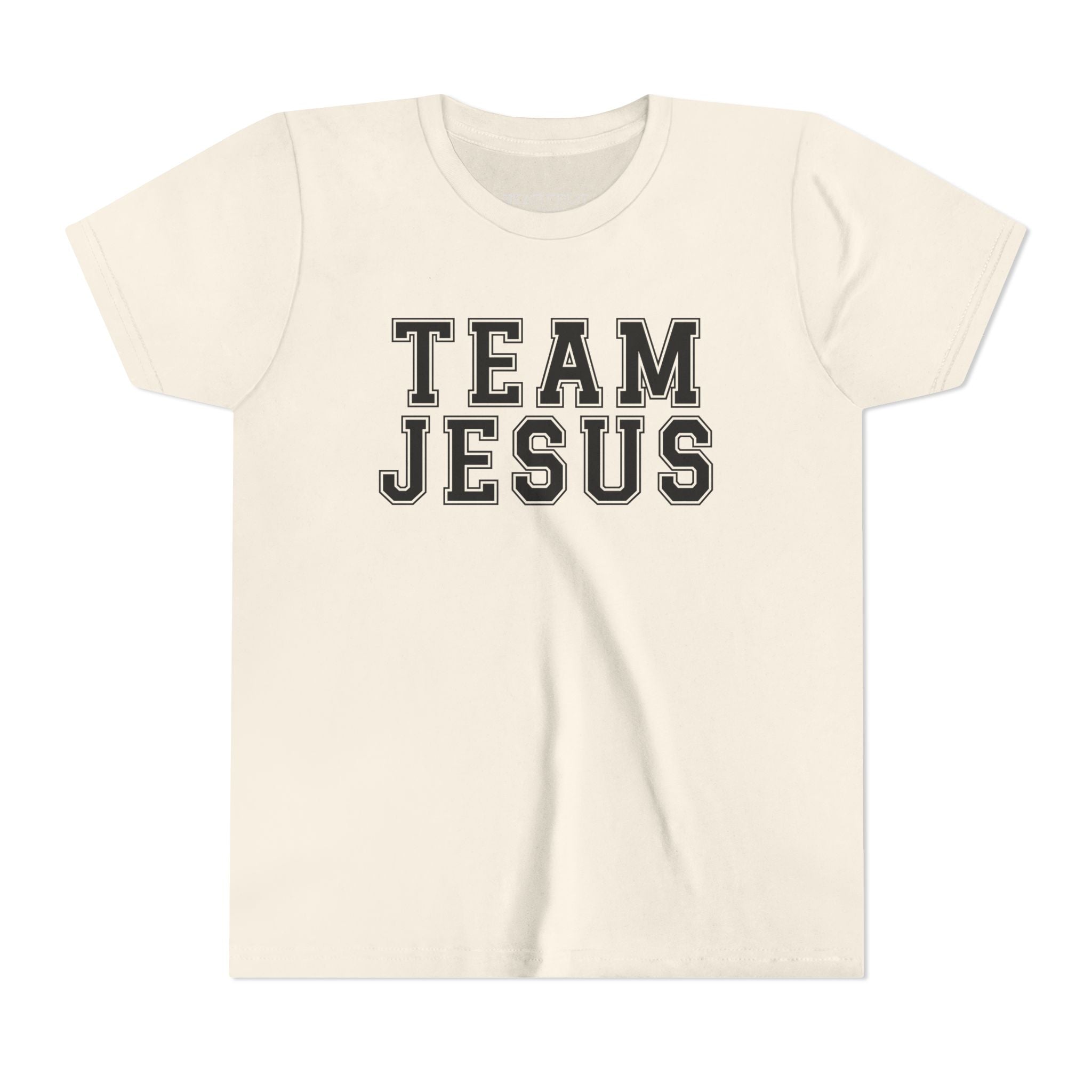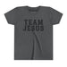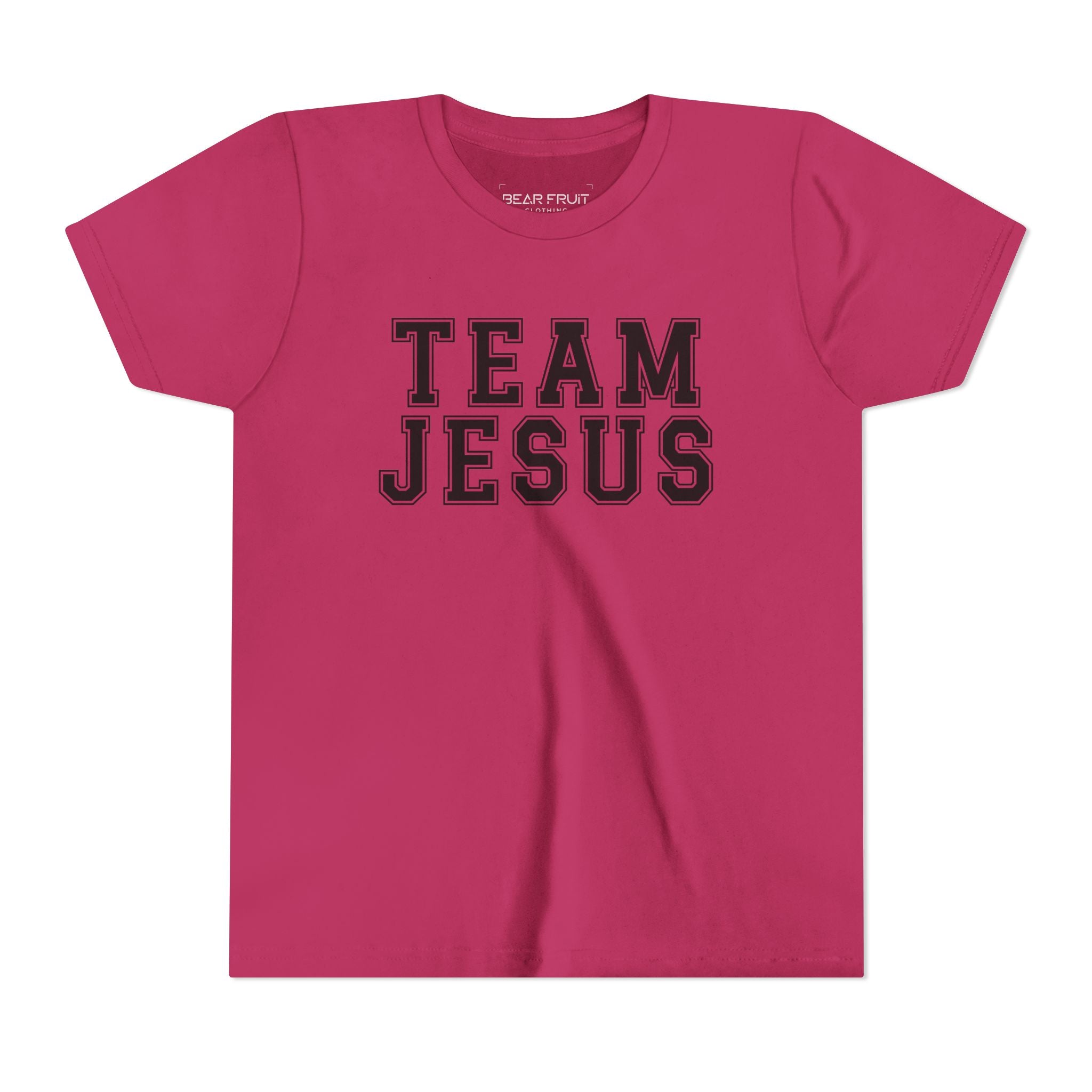A soft, lightweight youth tee that carries a clear message: Team Jesus. The clean collegiate-style lettering sits bold across the chest on a breathable, airlume-combed cotton fabric that stays comfortable all day. Side seams and shoulder tape keep the shirt’s shape through active play and repeated washes. The retail fit and crew neckline give a modern, casual silhouette that layers easily under hoodies or wears alone for church events, youth group outings, or everyday faith-forward wear. Tear-away DTF neck labels remove irritation, and ethical manufacturing means you’re choosing a shirt made with care.