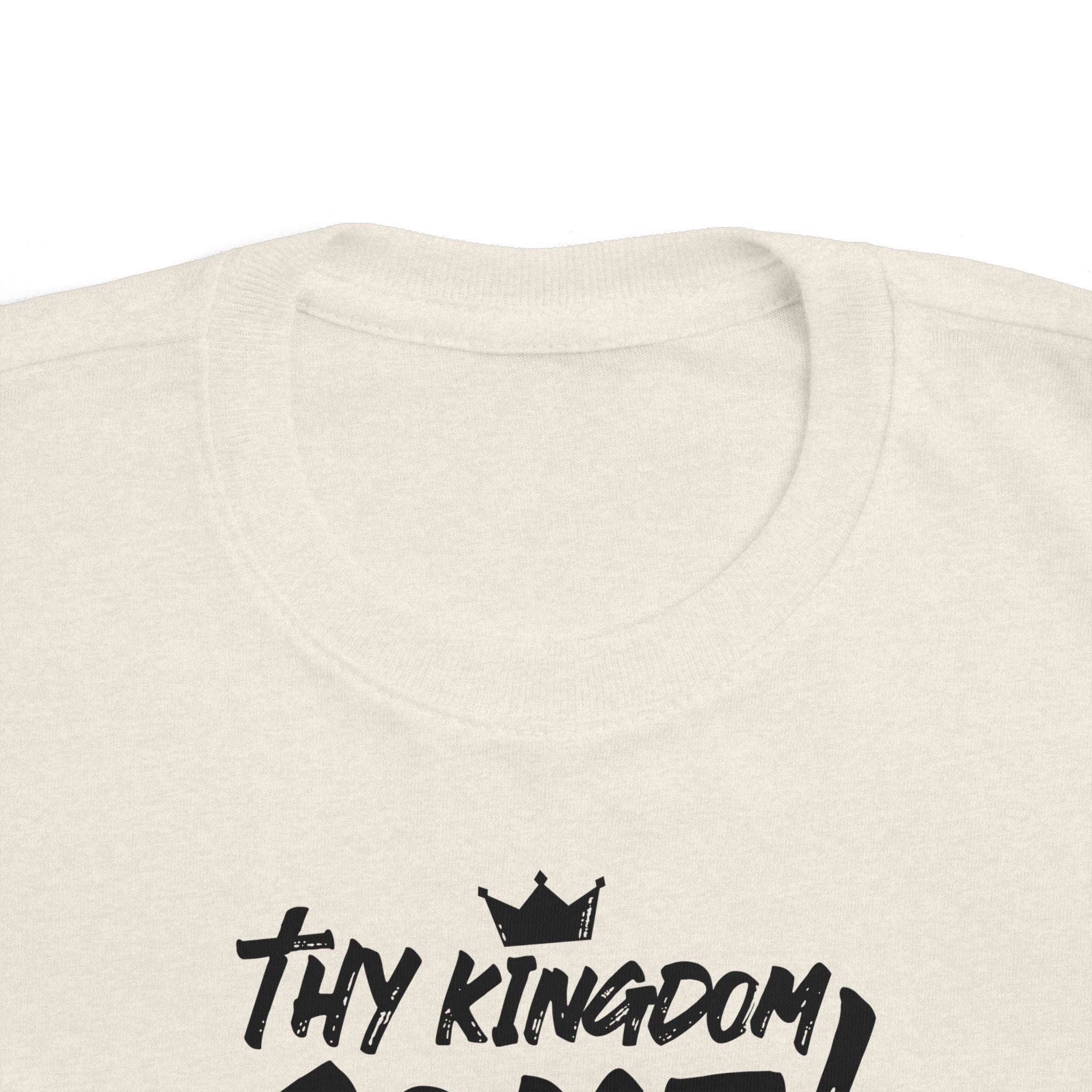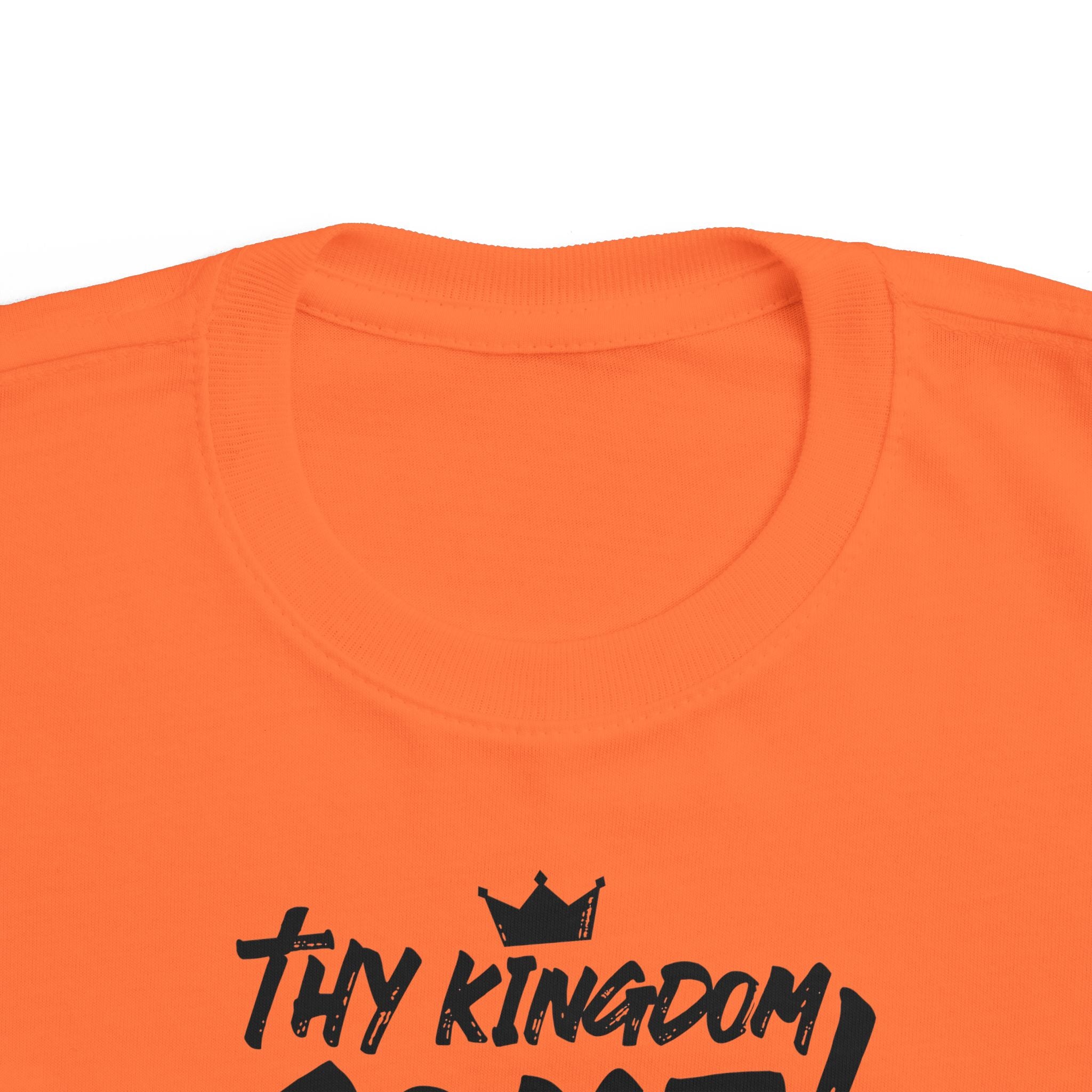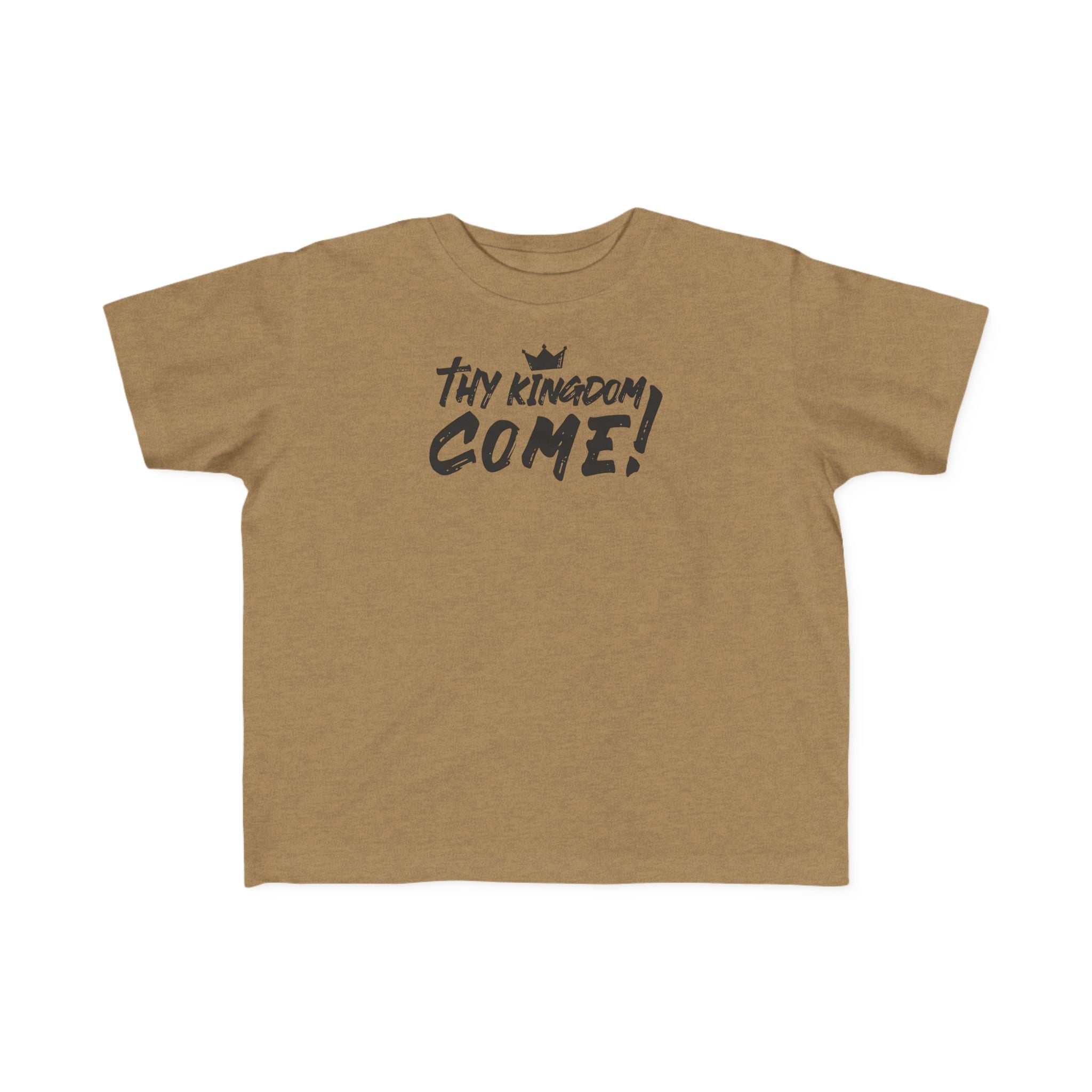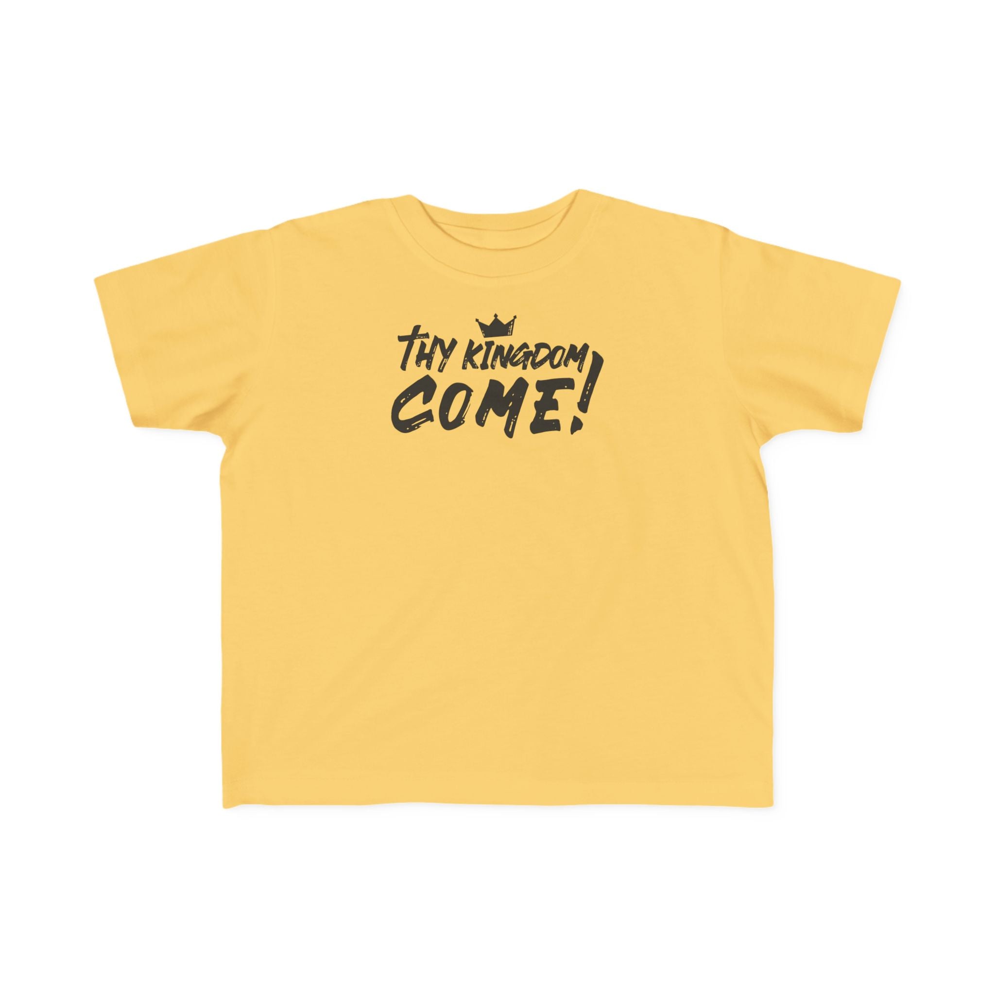 Soft, breathable tee made for tiny hands and big imaginations. The lightweight cotton keeps little ones comfortable during playtime and naps, while the joyful hand-lettered “Tiny Kingdom COME!” art adds a playful, spirited touch. It sits with a classic fit and clean lines so it layers easily under jackets or stands out on its own. Built with careful details — ribbed collar, shoulder tape and side seams — it stays shaped after washes and tumbles. A tear-away label and true-to-size cut make dressing fuss-free for busy mornings and family outings.