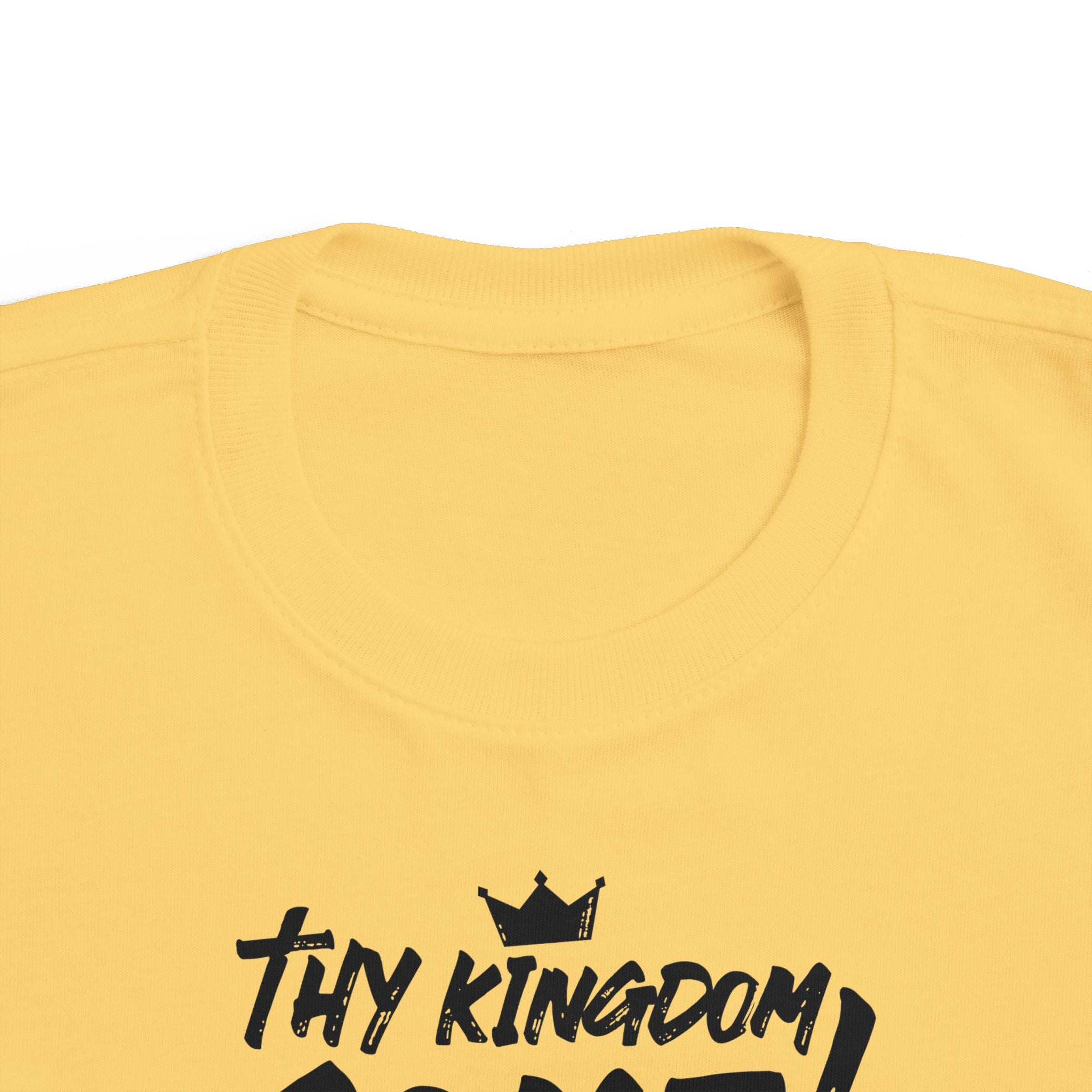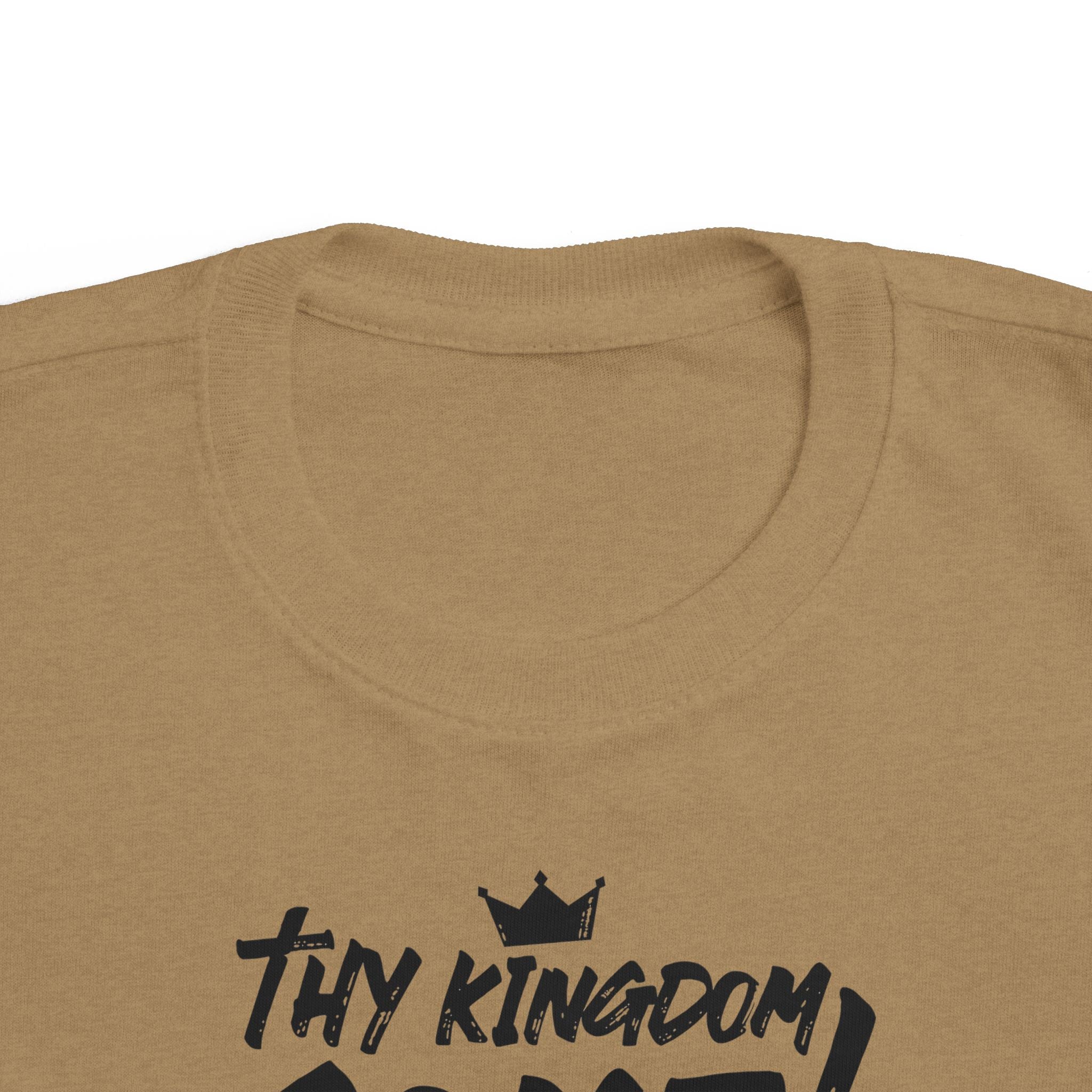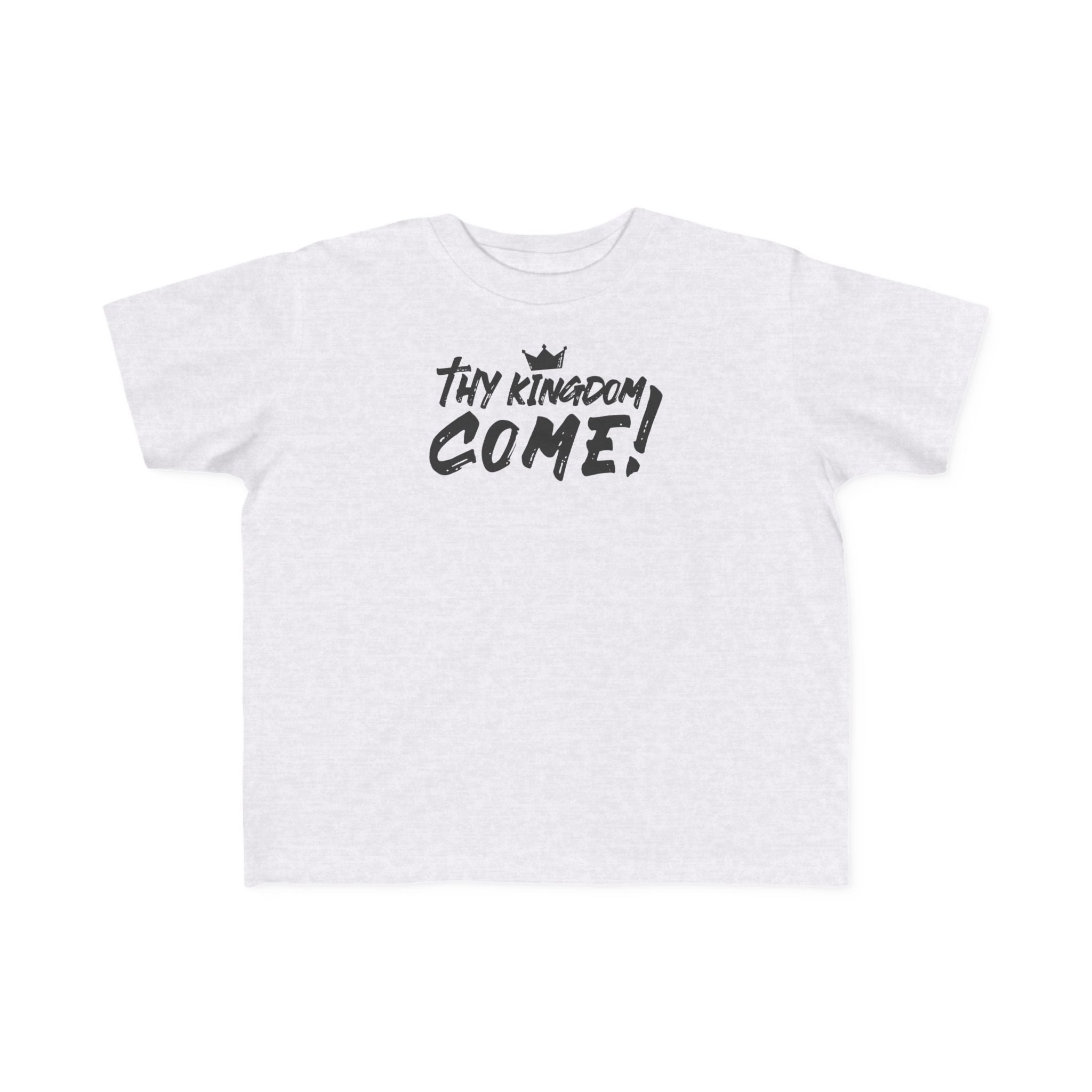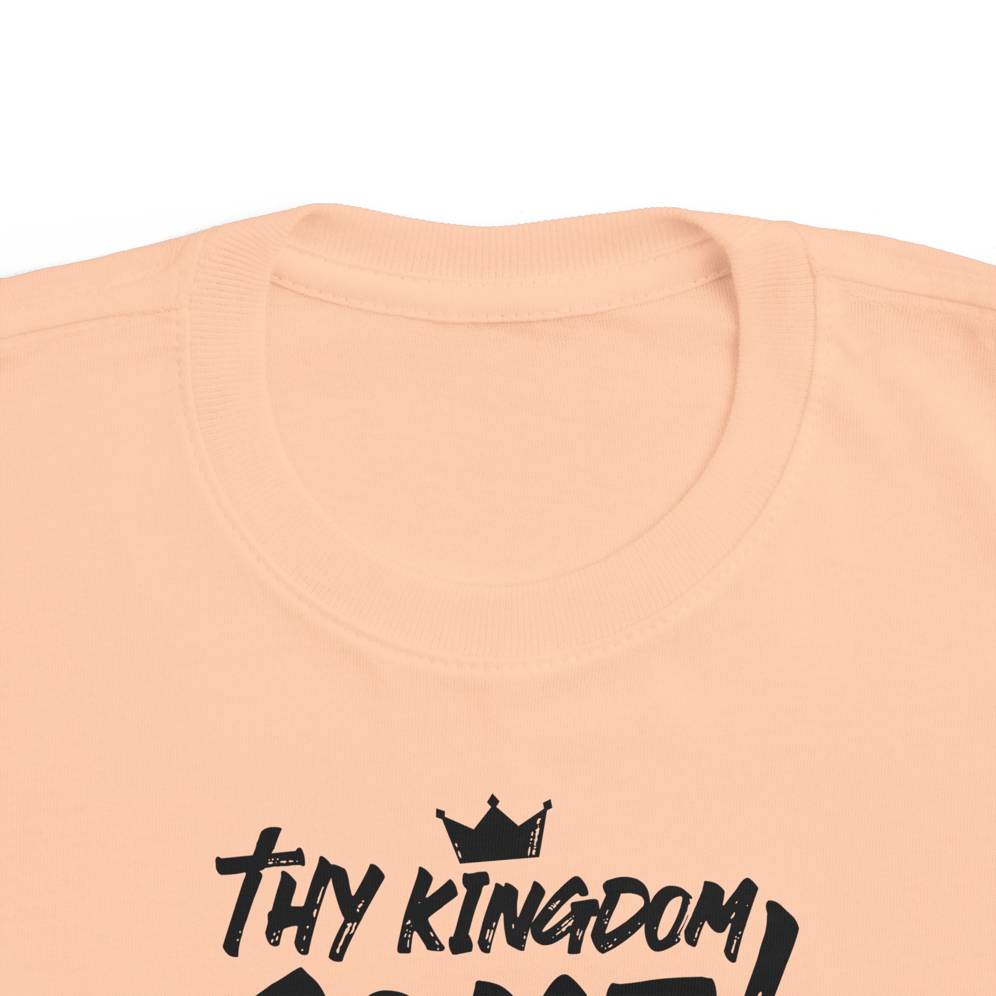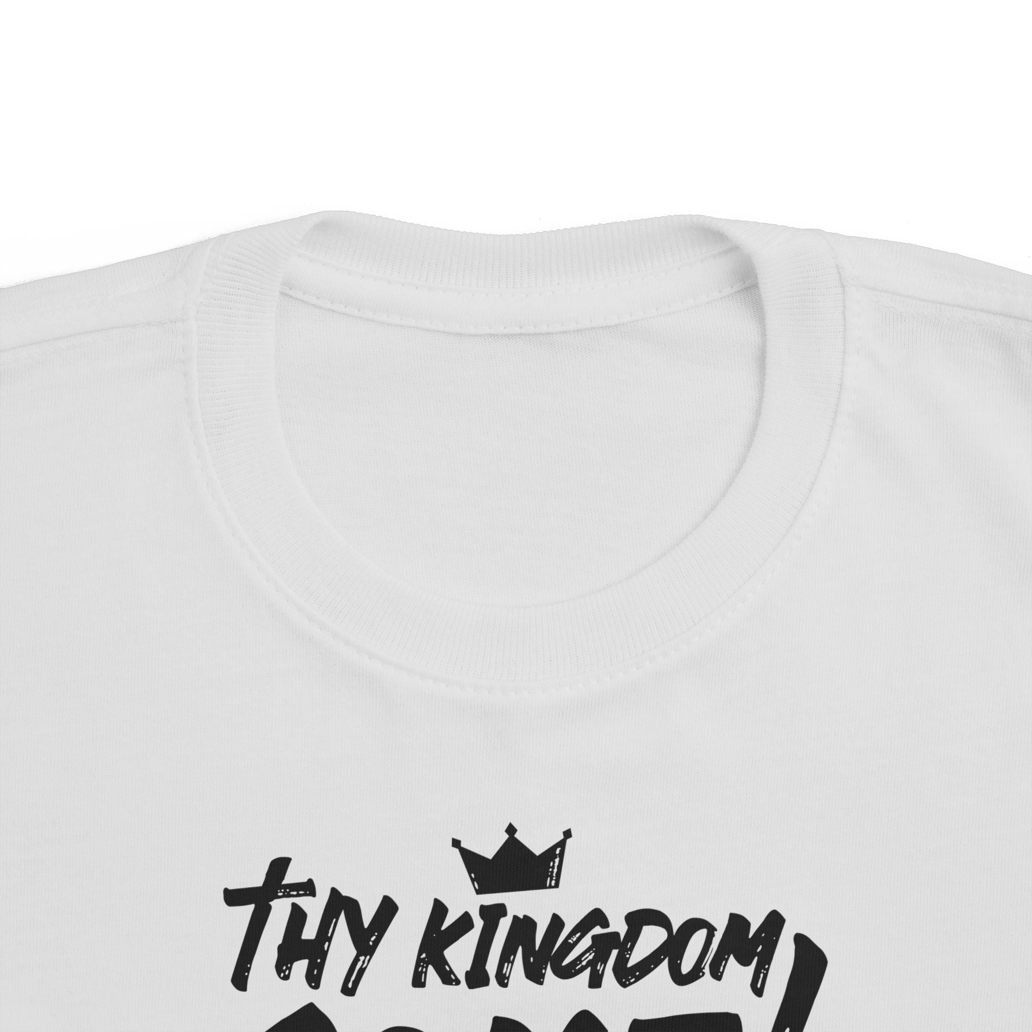 Soft, breathable tee made for tiny hands and big imaginations. The lightweight cotton keeps little ones comfortable during playtime and naps, while the joyful hand-lettered “Tiny Kingdom COME!” art adds a playful, spirited touch. It sits with a classic fit and clean lines so it layers easily under jackets or stands out on its own. Built with careful details — ribbed collar, shoulder tape and side seams — it stays shaped after washes and tumbles. A tear-away label and true-to-size cut make dressing fuss-free for busy mornings and family outings.