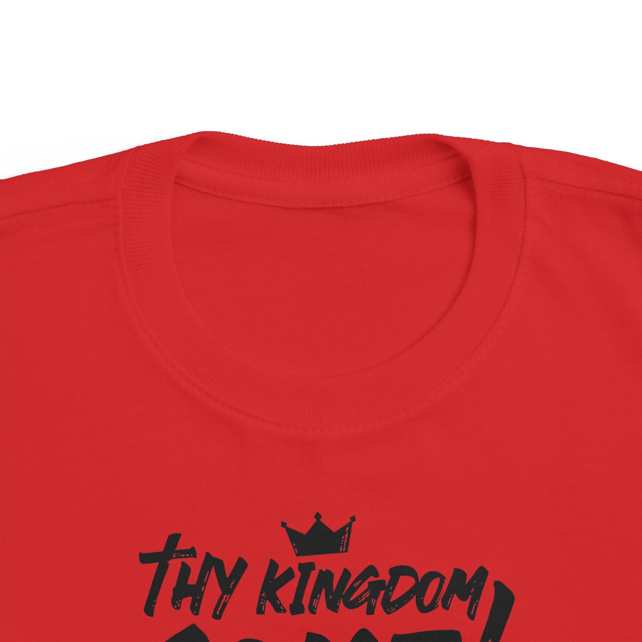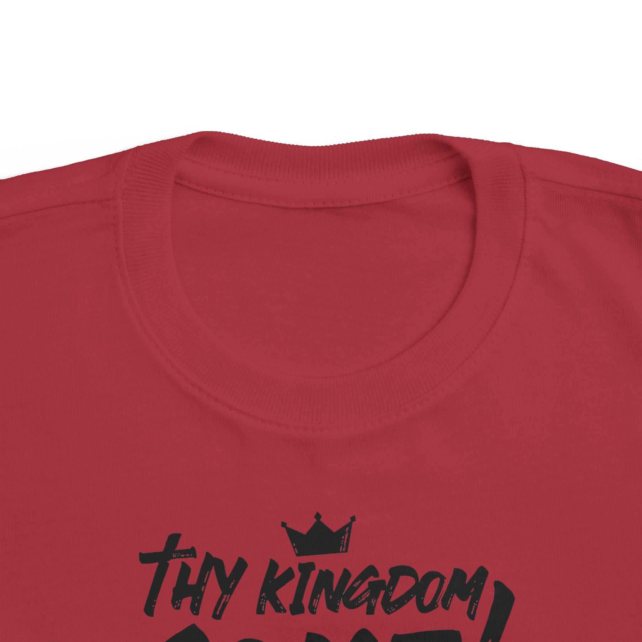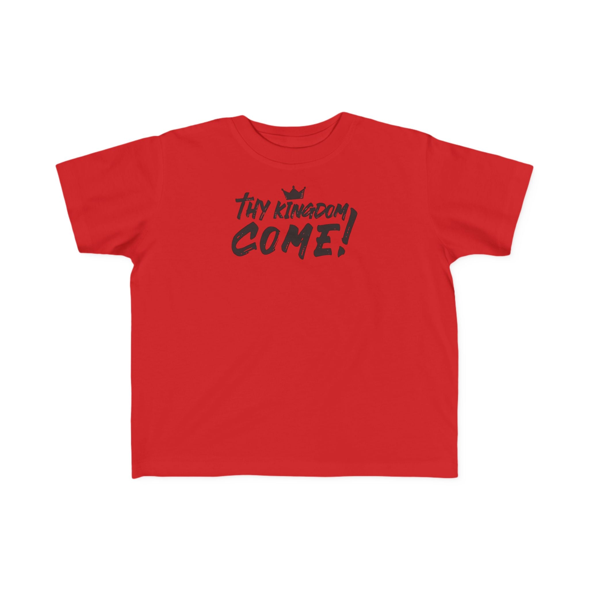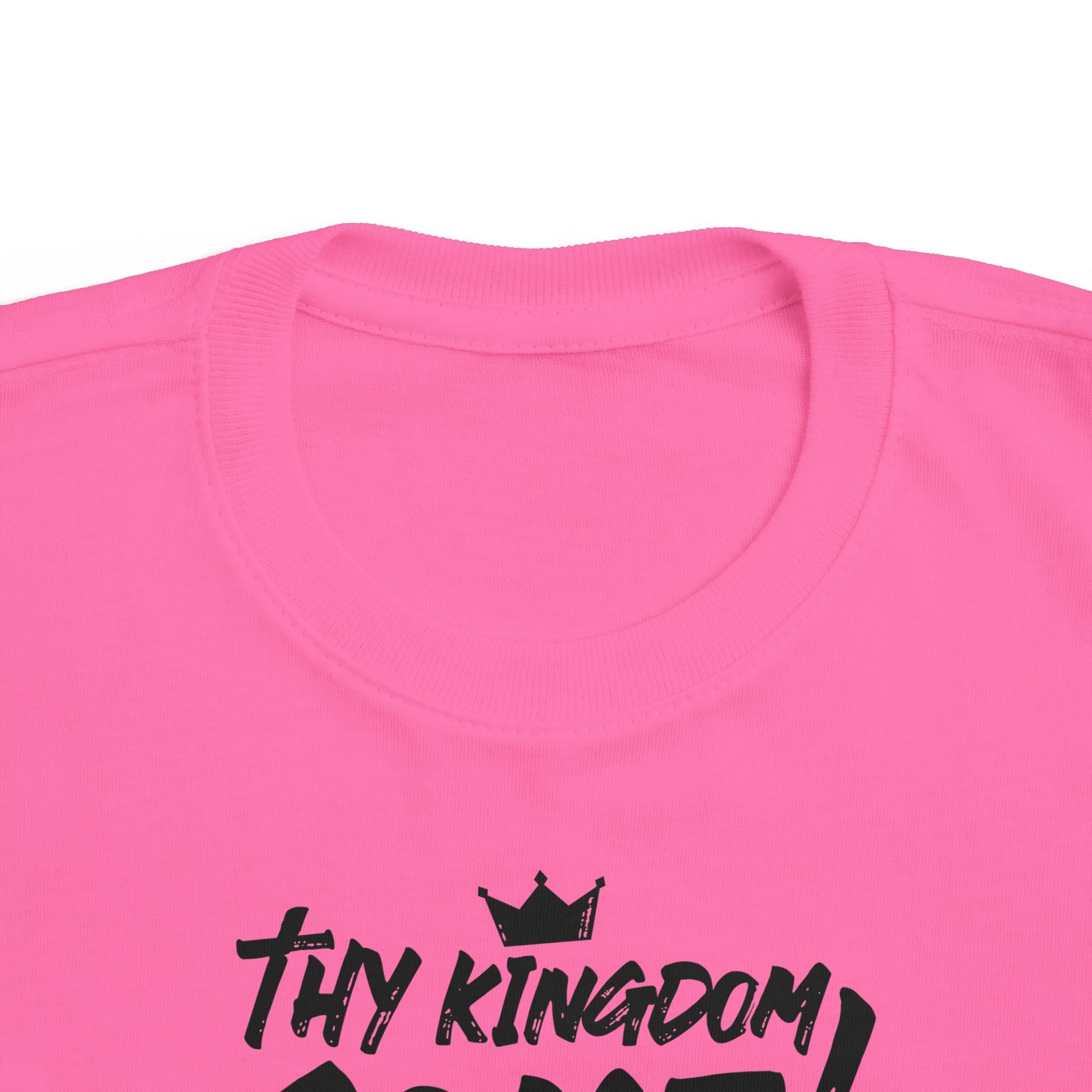 Soft, breathable tee made for tiny hands and big imaginations. The lightweight cotton keeps little ones comfortable during playtime and naps, while the joyful hand-lettered “Tiny Kingdom COME!” art adds a playful, spirited touch. It sits with a classic fit and clean lines so it layers easily under jackets or stands out on its own. Built with careful details — ribbed collar, shoulder tape and side seams — it stays shaped after washes and tumbles. A tear-away label and true-to-size cut make dressing fuss-free for busy mornings and family outings.